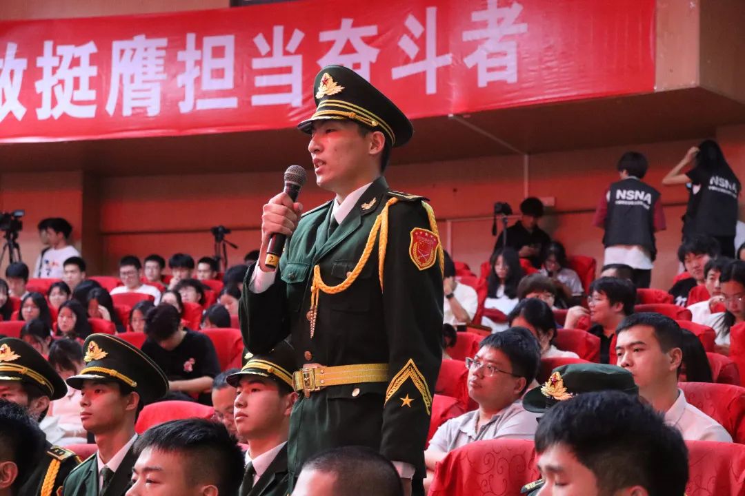 陈祥榕烈士生前所在部队教导队队长和通信班班长上台向在场师生宣讲卫国戍边英雄陈祥榕事迹和喀喇昆仑精神。大好河山、寸土不让,这是戍边战士刻下的铮铮誓言,也是捍卫国家领土、不负先辈荣光的庄严宣示。面对严峻斗争考验,戍边战士不辱使命,不负重托,前仆后继,英勇奋斗,用生命践行使命,用使命镌刻忠诚,以满腔热忱和无畏情怀,兑现了保家卫国的庄严承诺。