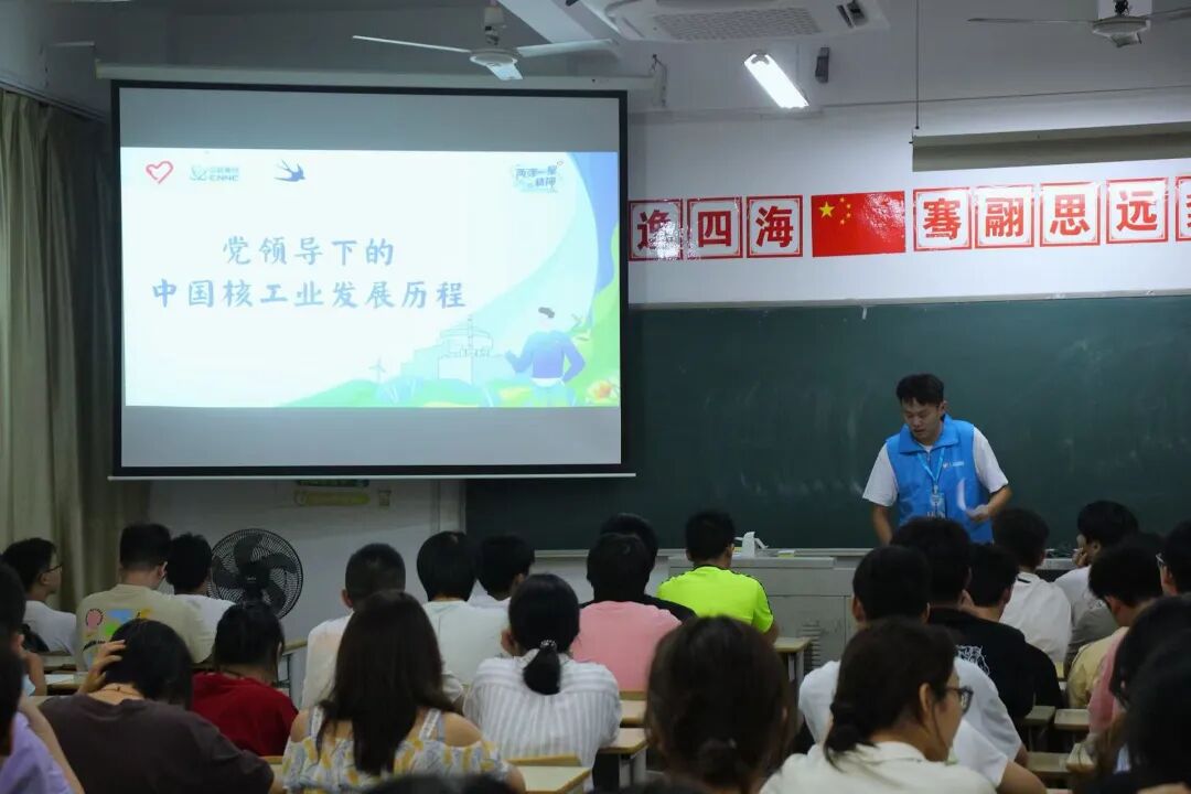 宣讲重点介绍了我国核工业从“两弹一艇”的辉煌成就,到秦山核电站实现中国大陆核电“零的突破”,再到具有完全自主知识产权的“华龙一号”成为国家名片的跨越式发展。通过数据对比和实例讲解,宣讲人指出,核能作为清洁高效能源,对实现“双碳”目标、保障国家能源安全具有重大意义。同时,宣讲还强调了核电站多重安全屏障系统和辐射科普知识,增强同学们对核电安全的认知。