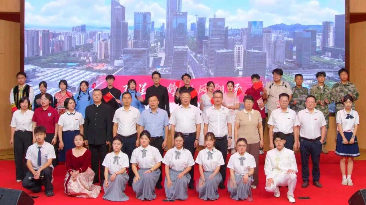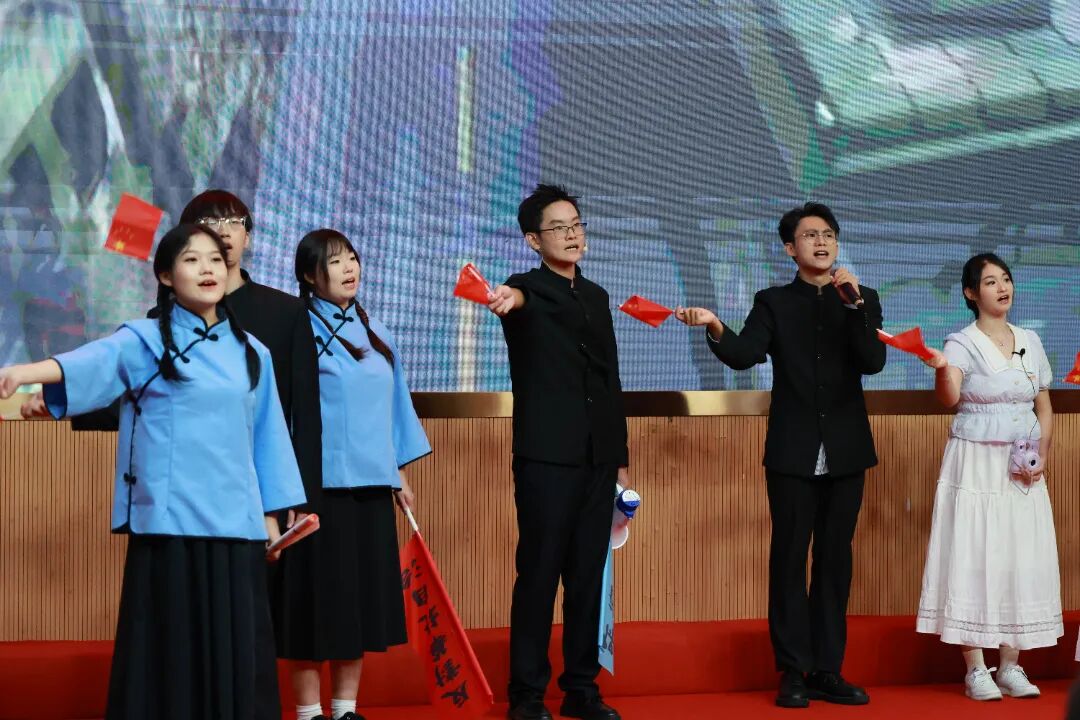 9月23日下午,我校以“传承抗战精神,赓续红色血脉”为主题,在东侨校区图书馆报告厅上演了一堂形式新颖、内容生动的大思政课,通过“一首歌、一个故事、一节课、一封家书、一部情景剧”的创新形式,串联起看、听、诵、唱、悟等多维体验,让师生在沉浸式思政课堂中传承红色基因,在缅怀先烈中坚定报国之志。