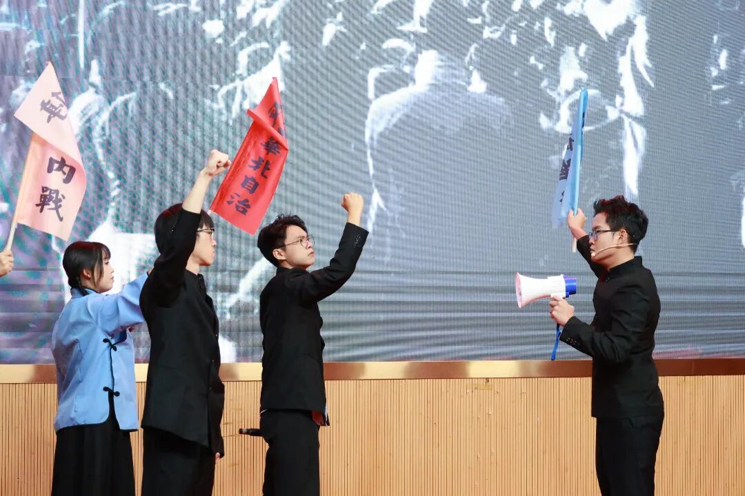基于“一二·九”运动改编的情景剧中,“穿越者”与历史对话,青春热血与时代使命交织,重现1935年青年学子救亡图存的壮志豪情,台下时不时响起掌声——这不仅是一堂历史课,更是一堂关于责任与传承的生动教育。