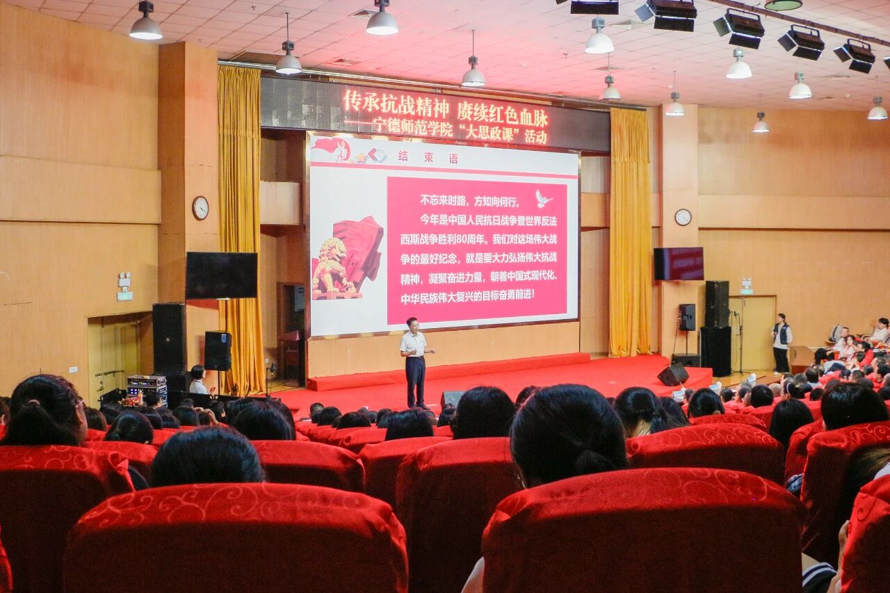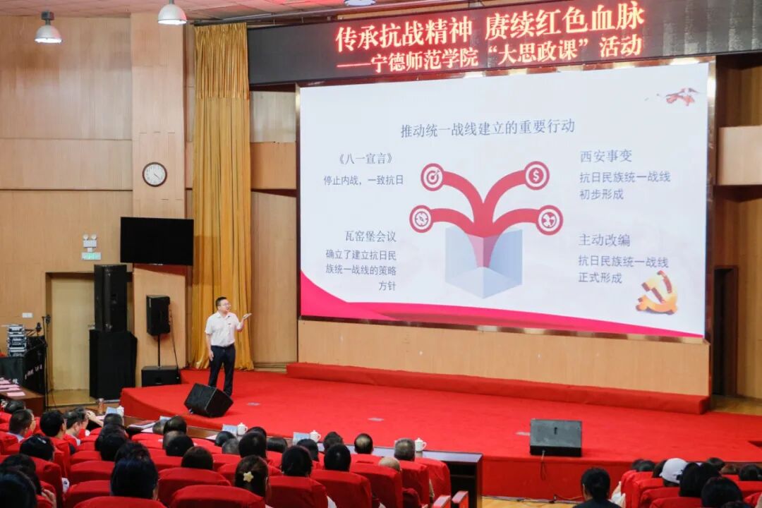 马克思主义学院游国斌教授以珍贵的历史图片和文字史料为引,深情讲述闽东儿女在抗战中的英勇事迹。从“国共和谈,共御外侮”到“北上抗日,征战南北”,再到“社会各界,同仇敌忾”,三个篇章层层递进,将那段波澜壮阔的历史鲜活呈现。台下师生凝神倾听,仿佛置身于那个烽火连天的年代,深刻体悟到革命先烈以血肉之躯筑就民族脊梁的崇高精神。
