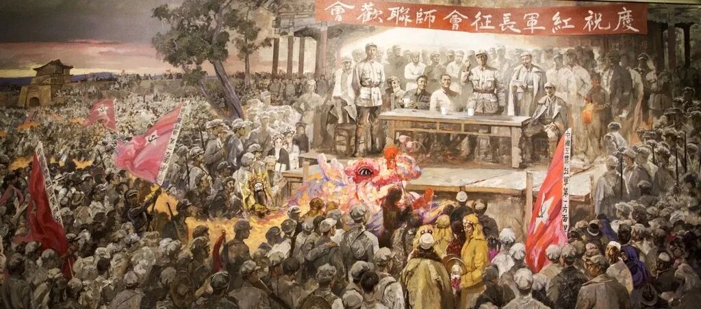 甘肃会宁,红军长征胜利纪念馆,反映会宁会师大会场景的油画。