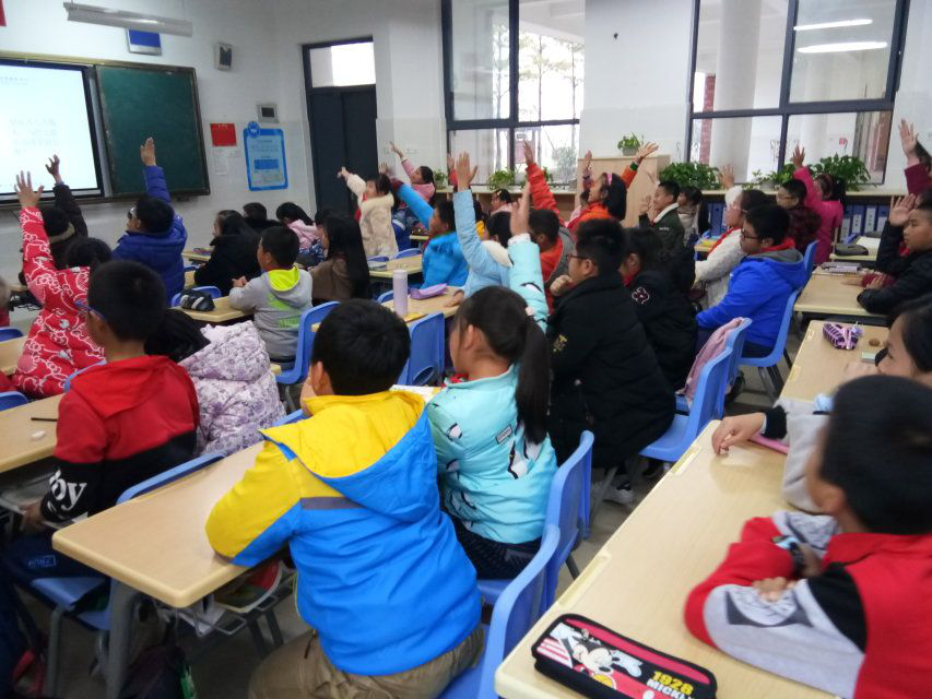 12月15日下午,绿点的环保志愿者们准时到达附属小学的教室开展今天的环保教学活动。在上课前,讲师热情开朗的与同学们互动、猜谜语,同学们高举右手积极回答问题,现场反响很好,引出了本次活动的主题,同学们的热情也被带动起来。