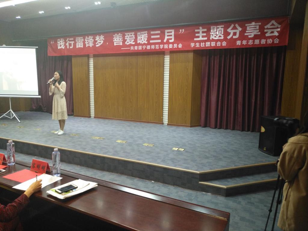 4月7日晚7点,于行政楼3楼报告厅开展了“践行雷锋月,善爱暖三月”的主题演讲,本次活动旨在通过演讲的形式,以语言的力量来激发学生的共鸣,来促使更多的同学加入志愿服务中。本次活动由青年志愿者协会承办。