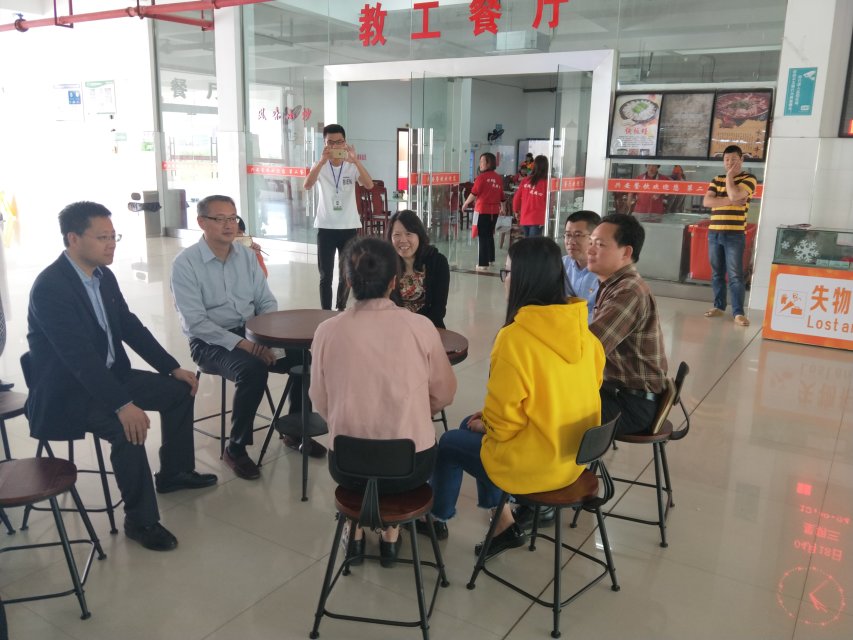 在现场,校领导与同学们进行了简短的座谈,详细询问了活动内容。余晓琪同学向校领导介绍了此次环保和创意活动的主题。夏书记表示,希望有更多的同学都参与到手工艺品的创作活动中,增强同学们的创新实践能力,倡导资源的回收利用。今后社团可以多开展此类活动,以废弃物为原料进行创作,将环保理念传递给每一位学生,共同打造美丽宁师。