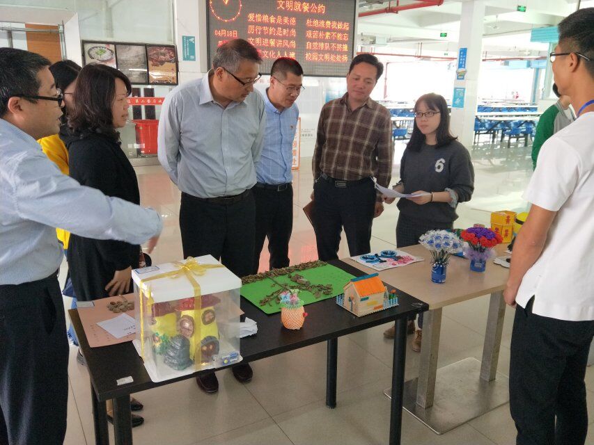 4月18中午,宁德师范学院绿点环保协会在宁德师范学院东侨校区举办以“创意来源于生活,环保从点滴开始”为主题的手工艺品DIY大赛。校党委书记夏良玉、校党委副书记徐晓丹莅临现场,与相关部门和二级学院领导、教师共同参观指导并对作品进行了点评。本次活动共有27位各学院的老师和600多名学生参加了投票评选。