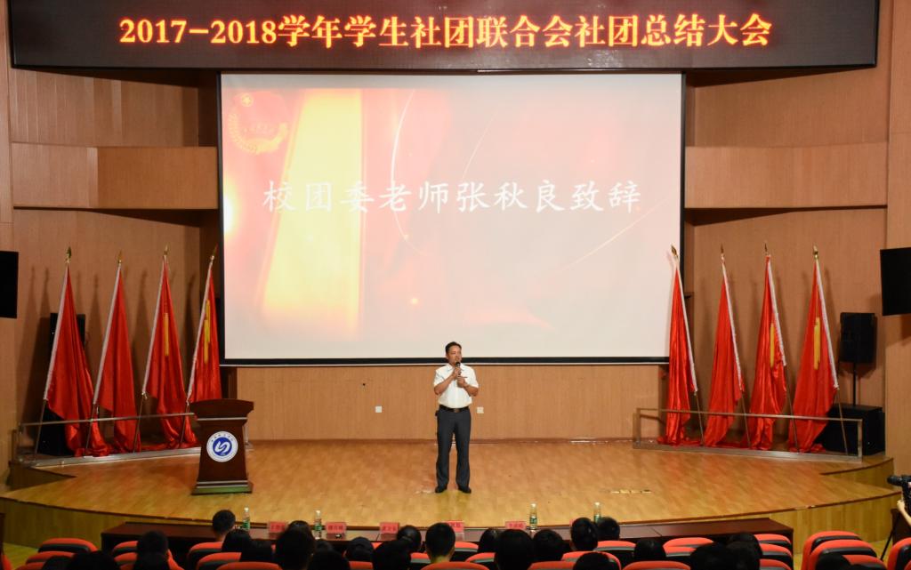 张秋良副书记做开幕致辞,充分肯定了我校社联、社团取得的成绩,对社团学生干部的辛苦工作表示赞扬,并就爱国、 兴趣 、创新三个方面提出了新的要求。“爱国是校园社团活动的出发点,只有坚定这个立场,才能让社团活动更有意义;兴趣是让社团成立的动力,正是这种兴趣的趋同,让同学们更具有凝聚力,希望同学们不忘初心,继续努力;社团要取得更好的发展,创新是一个重要的驱动力,做与众不同的事情,让社团更具有竞争力。”他还鼓励同学们,我校现在有社团61个,在接下来的学习和工作中,打造百团竞争的局面。