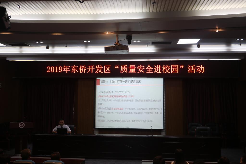 活动现场,东侨市场监管局特邀海峡银行福鼎支行金融部负责人为学生们带来“大学生如何防范非法网络贷款”的专题讲座,强化大学生防范意识,引导绿色消费观。