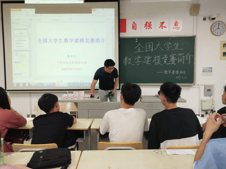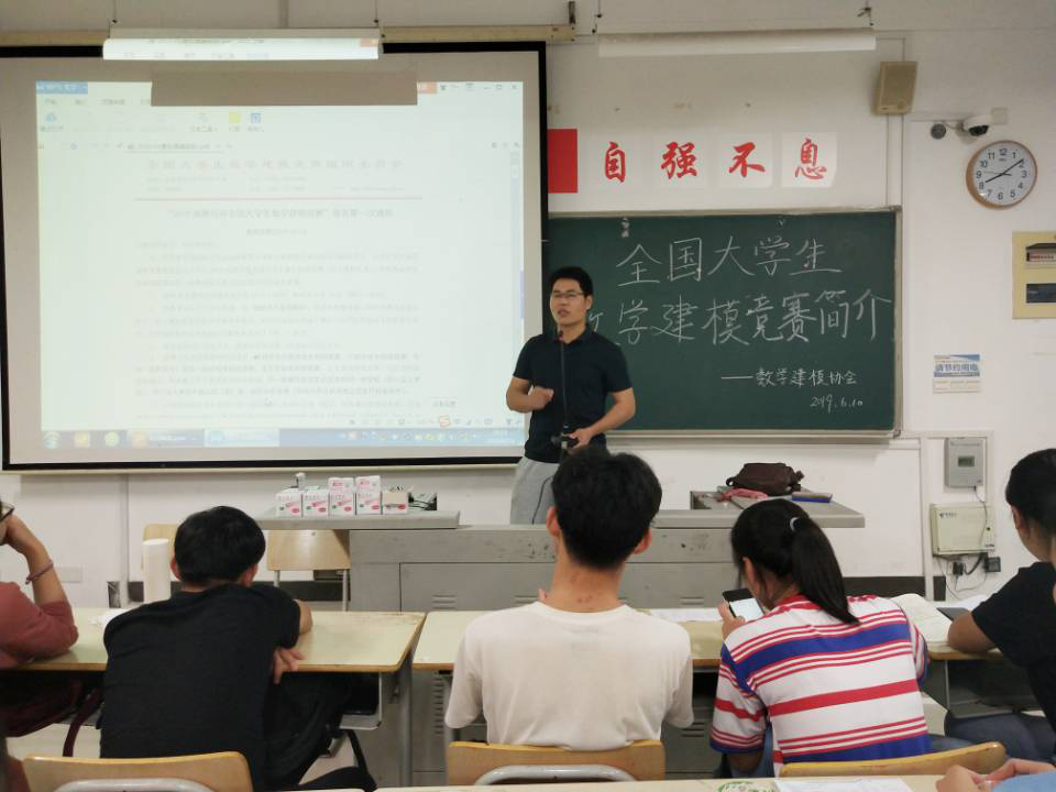 2019年6月10日晚上8点,数学建模协会指导老师陈省江老师于东侨校区CB301教室为数理学院学生开展关于全国大学生数学建模竞赛简介专题讲座。讲座中,省江老师为我们讲解关于比赛的相关注意事项,并提出部分要求。