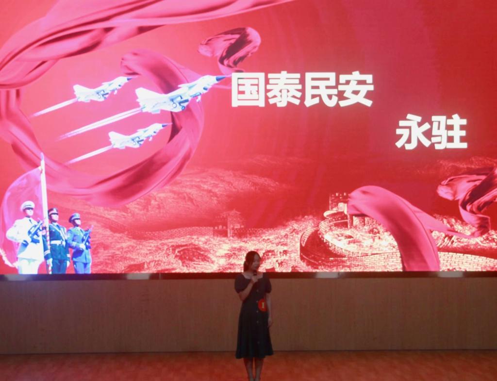 活动伊始,来自18教育与艺术学院的1号选手郑慧芳生动形象地诠释了国泰方能民安,体现了国防与我们的密切关系。
