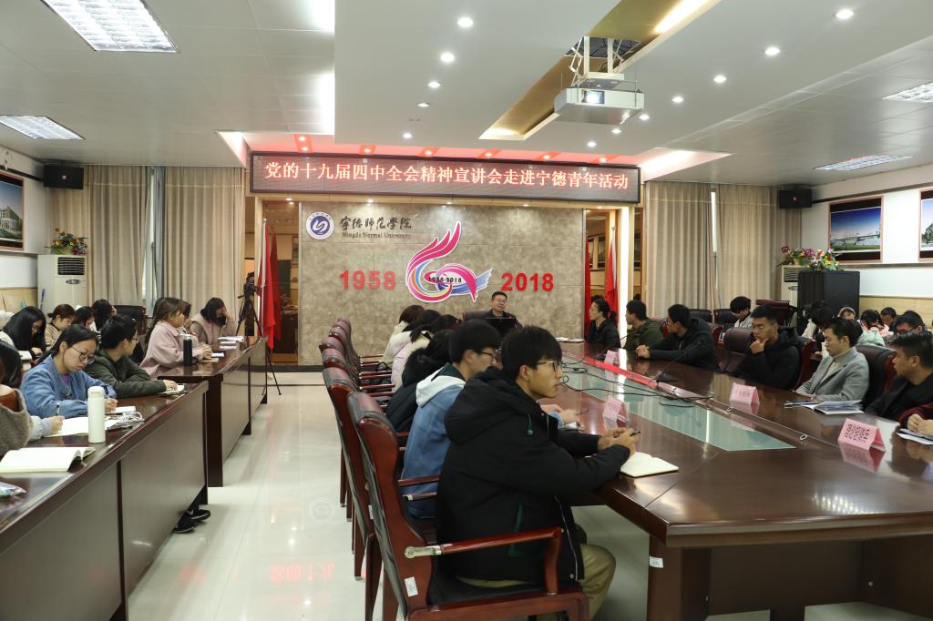 入冬寒意渐深,青年学习贯彻党的十九届四中全会精神的热情却似火。12月6日下午,我校在求知楼A308会议室开展党的十九届四中全会精神主题宣讲活动。中共宁德市委党校党史党建教研室主任、副教授谢岩福担任此次活动宣讲人。宁德团市委、蕉城团区委、东侨团工委及市直单位团干、创业青年、理论宣讲轻骑兵“青年说”小分队宣讲员、青联委员、第八期青马工程学员共60人聆听此次宣讲。活动由校团委组织宣传部部长李成皓主持。