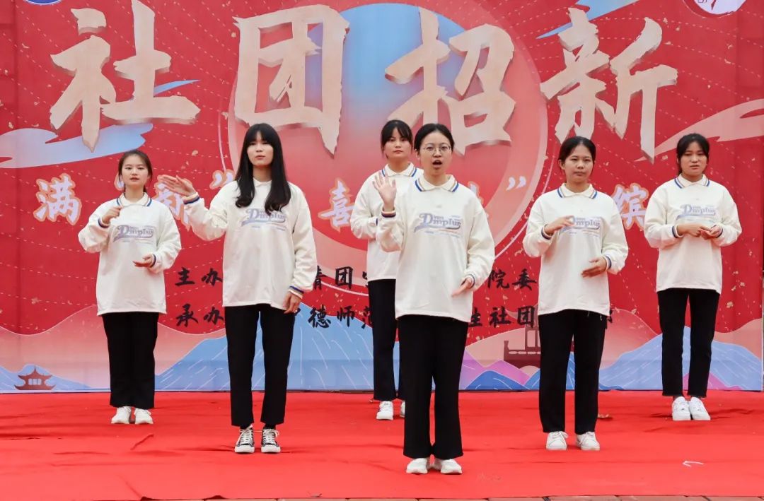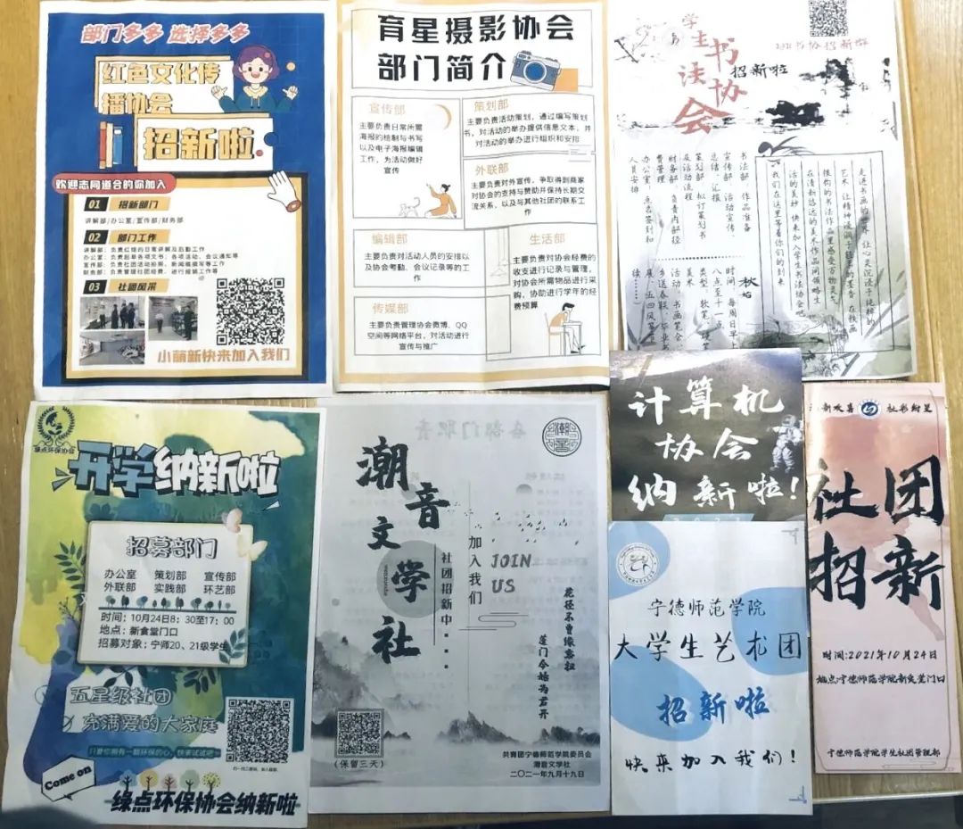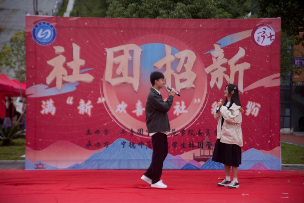 宁德师范学院共有学生社团42个,其中思想政治类5个,学术科技类5个,创新创业类1个,文化体育类15个,志愿公益类10个,自律互助类5个。在社团管理部与各社团的精心筹备下,别开生面的招新活动火热进行、人潮涌动!宁师学子们或高声欢呼,或生动演绎,充分展示出社团魅力和特色。