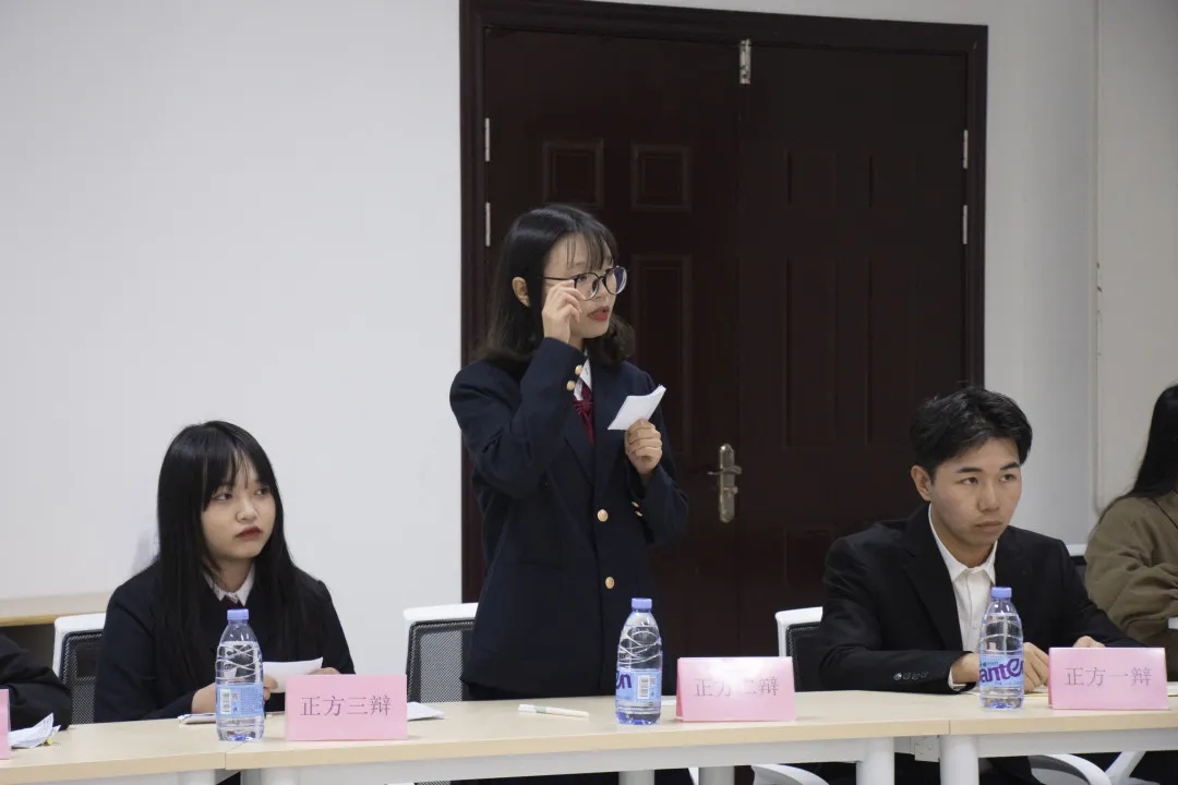 比赛共有三支队伍参赛,分别为21汉语言师范2班队、21商务英语队、21网络与新媒体队,采取循环赛制。决赛的辩题为“当代青年应该在大城市发展/当代青年应该在小城市大打拼。”