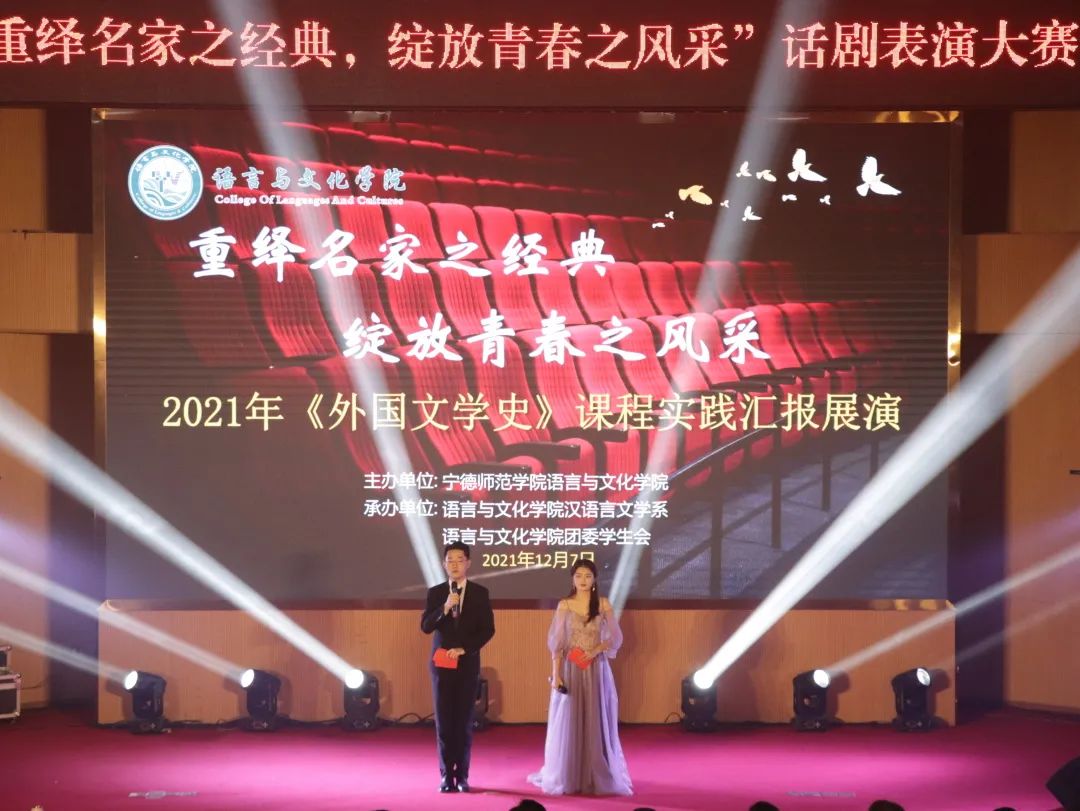 12月7日晚,语言与文化学院在图书馆报告厅举办“重绎名家经典,绽放青春之风采”话剧表演大赛。