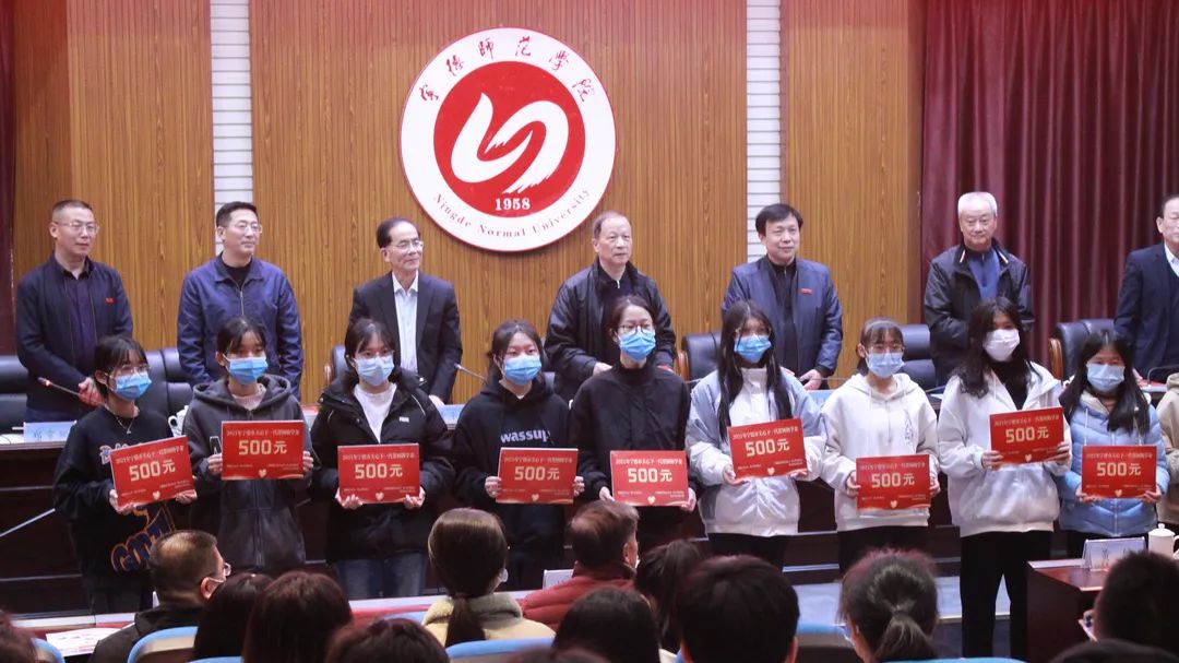 颜桂炀副校长感谢市关工委一直以来对宁师学子的关心和帮助,并希望受助的学生直面困难,自强不息;坚定信念,努力学习;常怀感恩,报效社会。