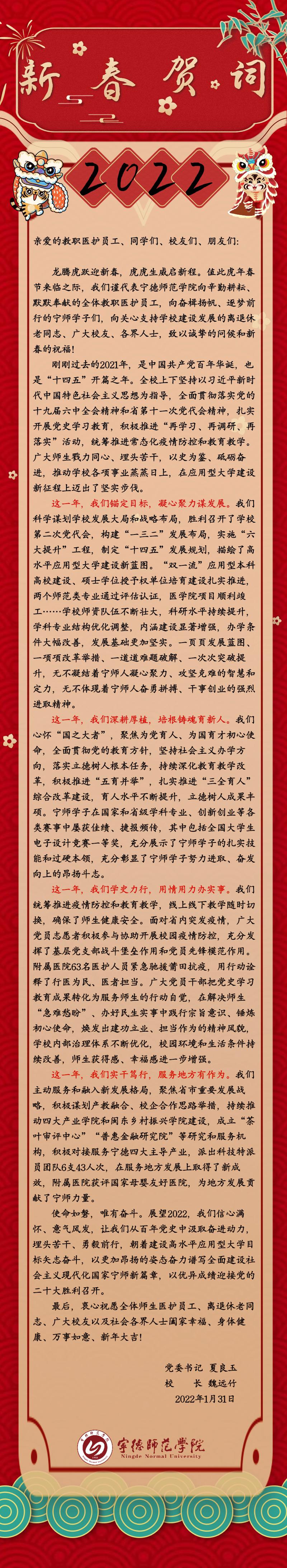 宁德师范学院2022年新春贺词