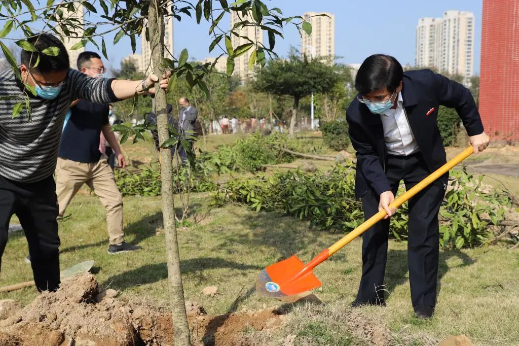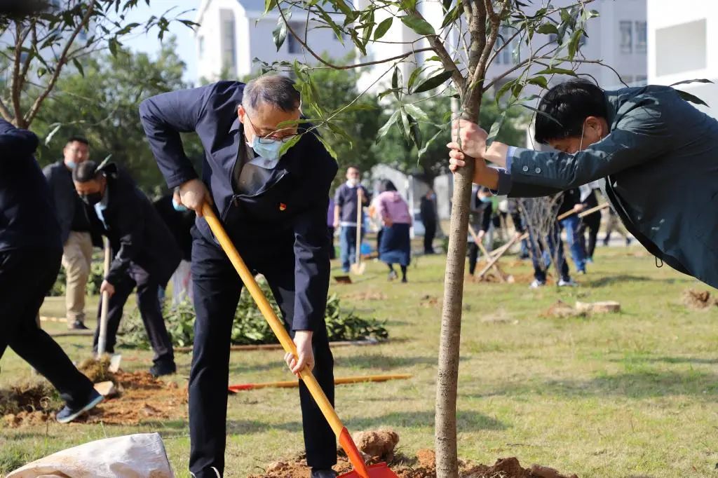 3月11日上午,在我国第44个义务植树节即将来临之际,校领导夏良玉、魏远竹、江潮炳、颜桂炀、张胜泉、陈旺玉,“青年干部党风廉政研修班”全体学员,以及各部门、各二级学院师生志愿者们一同在校园开展“美丽宁师,青春绘就”植树护绿志愿服务活动,为青春校园增添新绿。
