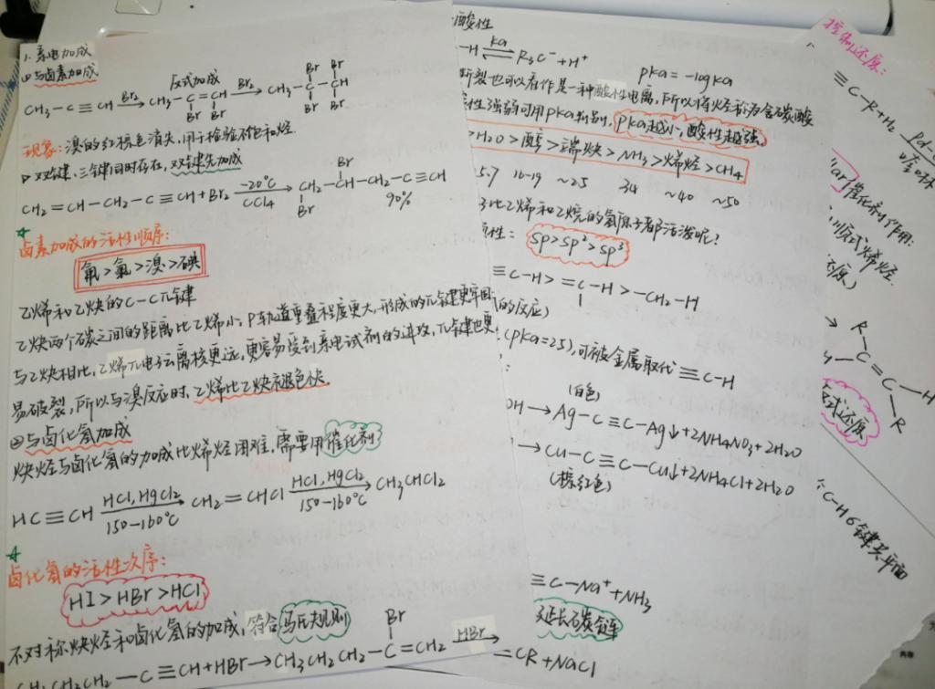 “有机化学真的很难,梳理不完的知识点。上课先听老师讲,重点内容或者老师做过笔记的就截图保存,课后再跟着课件整理笔记、复习,然后完成练习。”
