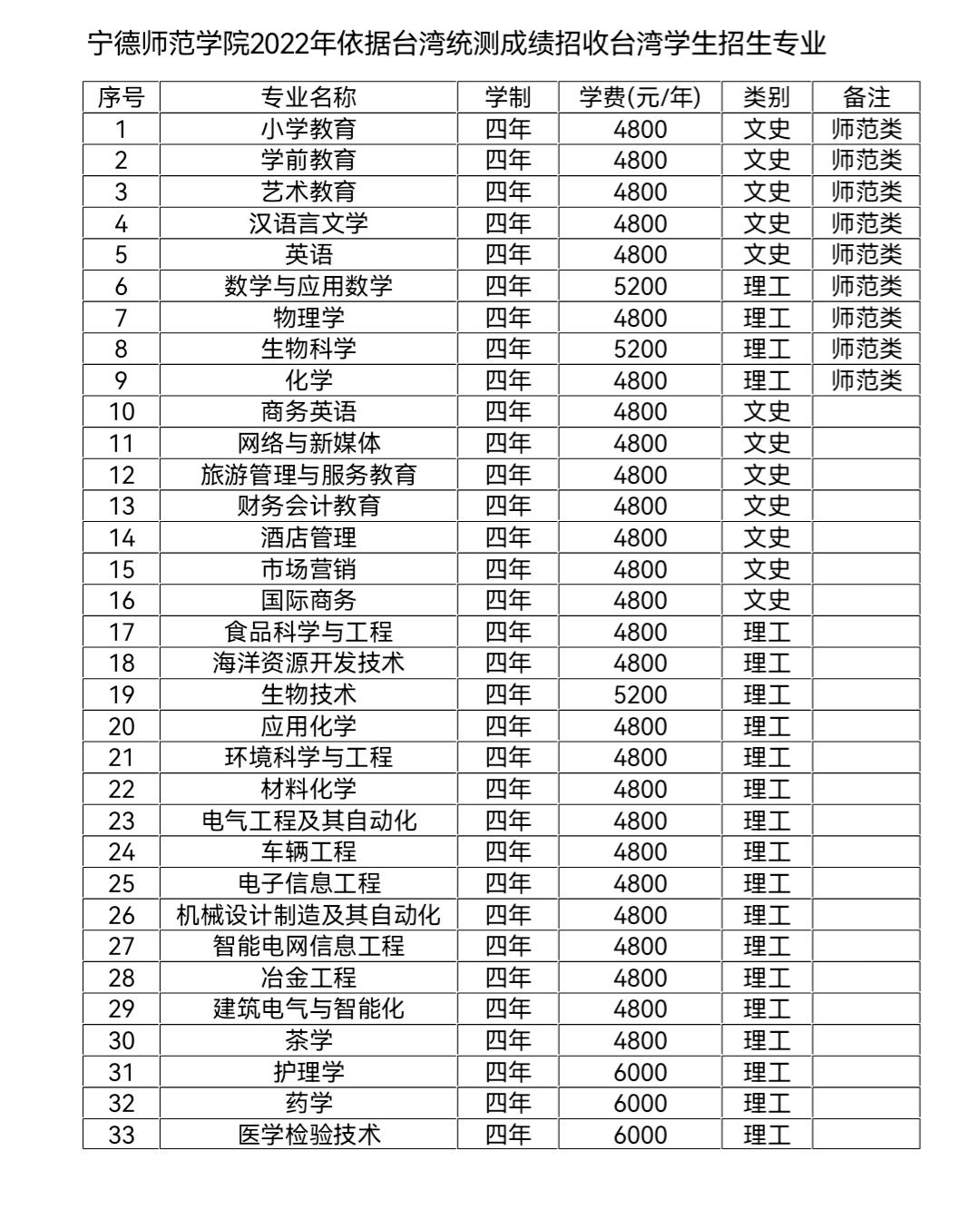 根据教育部和福建省关于招收和培养台湾学生有关规定,自2022年起,我校依据台湾科技院校四年制及专科学校二年制统一测试(以下简称“统测”)成绩招收符合相关条件的台湾高中毕业生,具体安排如下: