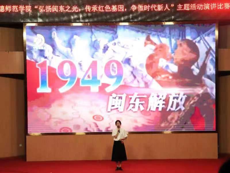 经各二级学院初赛推荐,十位参赛选手精神饱满正装上场。选手们紧扣主题,声情并茂、慷慨激昂,或从党组织在闽东地区发展历程出发,讲述闽东儿女对党的忠诚和深情;或从闽东经济建设出发,结合30多年闽东的沧桑巨变,阐述弱鸟先飞、滴水穿石的闽东精神;或顺着时代发展脉络,述说闽东脱贫事业的一次次突破、一次次前进,阐释信仰的力量;或通过回忆革命烈士凌福顺等人的壮烈事迹,讲述闽东革命老区的艰苦斗争;或从卫国戍边英雄陈祥榕舍身卫国英雄事迹中,抒发新时代青年对祖国炽热的爱。选手们饱含深情的演讲,带领大家重温闽东红色经典,回眸历史瞬间,致敬英雄先烈,展示了新时代大学生坚定理想信念、勇担时代使命的担当与抱负。