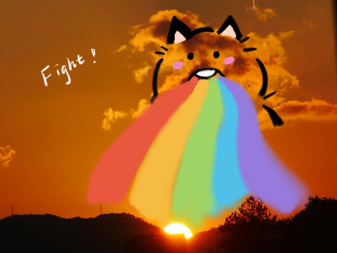 成群结队地向着霞光