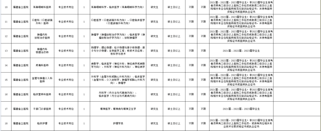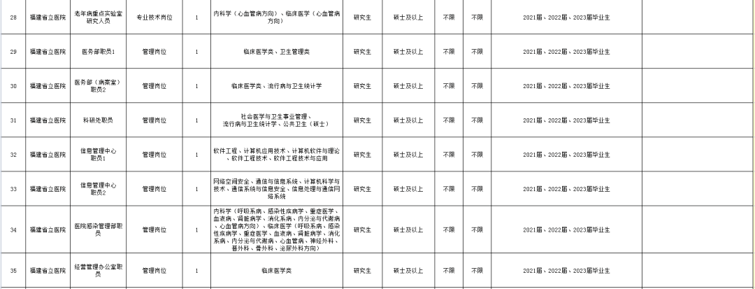 福建省老年医院(福建省立医院北院)招聘紧缺急需人才3名