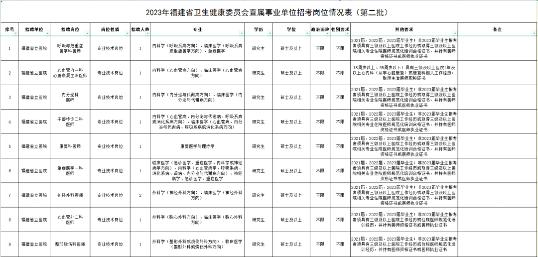 2023年度福建省卫生健康委员会直属事业单位公开招聘工作人员工作方案(二)
