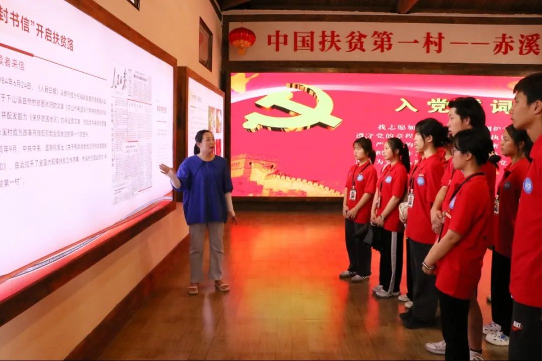 实践队队员认真听村委干部杨玉燕讲述赤溪村的扶贫历史