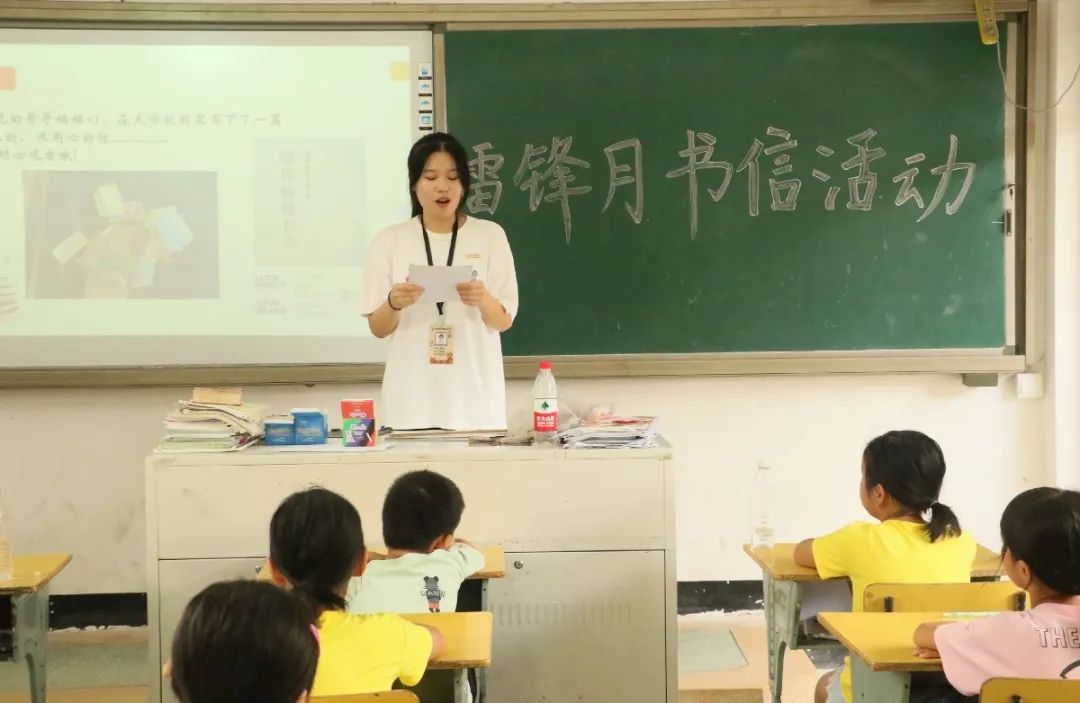实践队队员为孩子们朗读大学生哥哥姐姐的来信