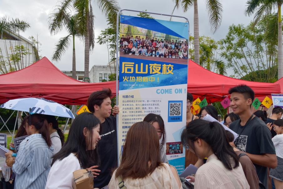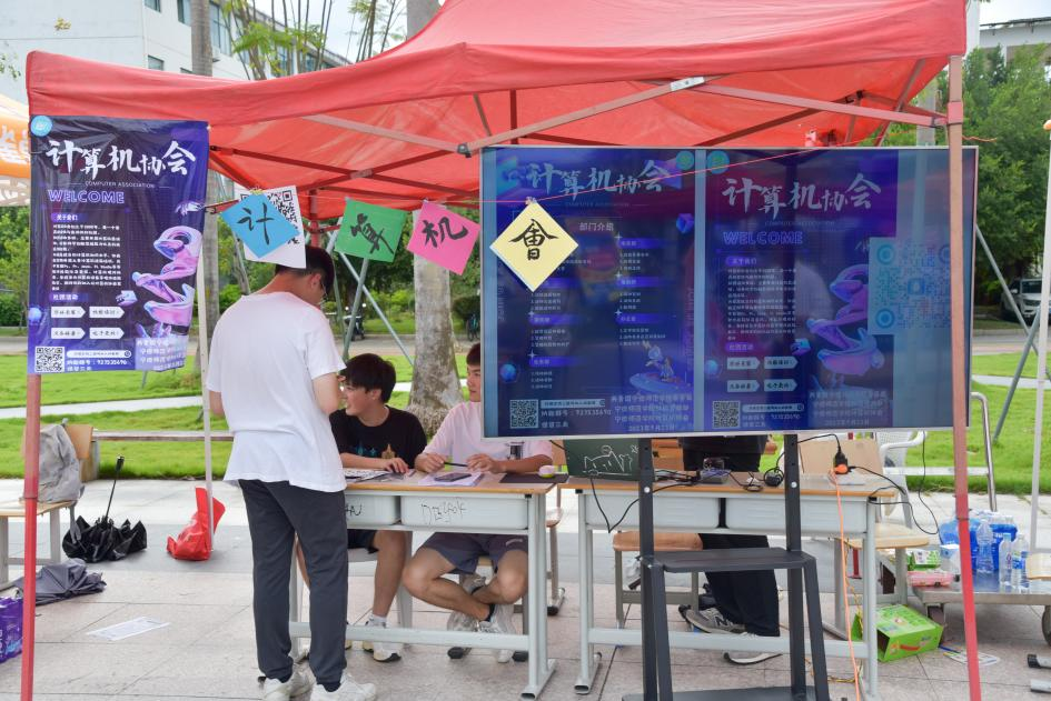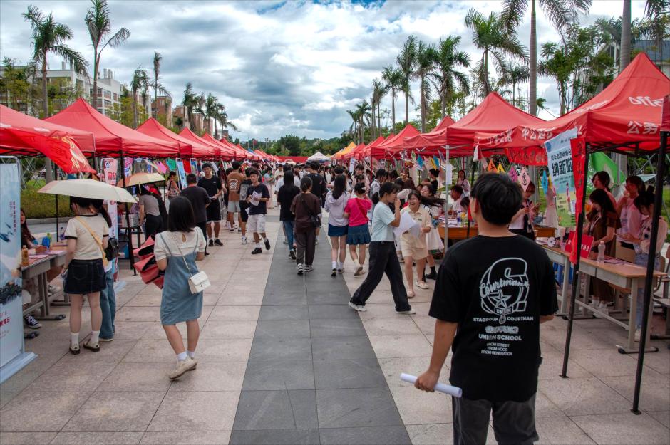 2023年9月23日,宁德师范学院“社团纳新”顺利举办,尽显校园风采,尽展社团活力。秋阳在枝桠间柔醉迷晃,透过叶隙的斑驳光影,在地上书写成行。整齐排列的桌椅,色彩缤纷的宣传海报与立牌在道路间穿梭,现场氛围热烈绚烂。