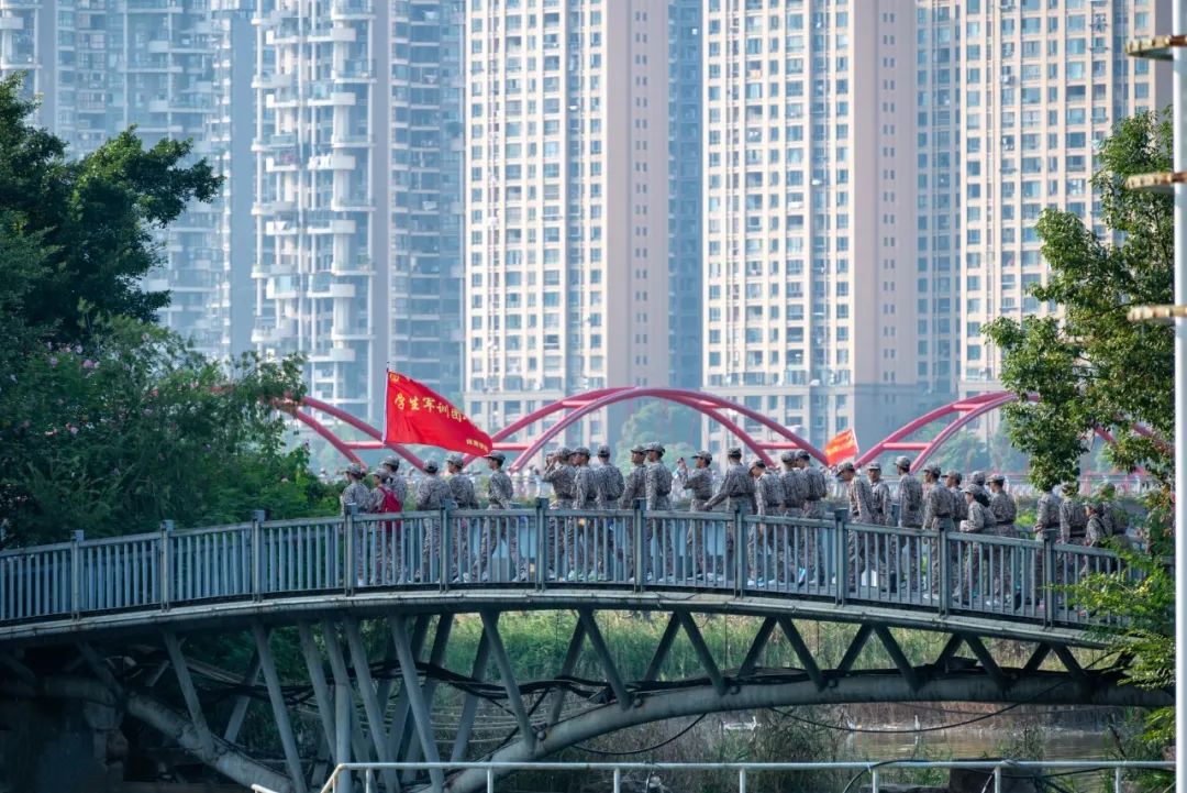拉练活动由校门口出发沿东湖环线,沿途参观长江支队纪念园、摆脱贫困纪念馆,经南岸公园、金马大桥回到学校。在这条长路上,同学们相互陪伴、相互鼓励。一路高歌,一路前行。嘹亮的军歌将团结唱响,每位同学脸上都洋溢着无畏的笑颜。