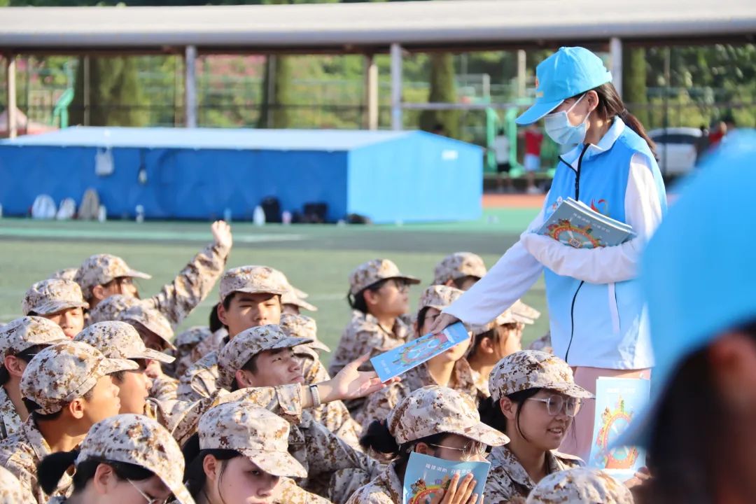 志愿者向参训学生发放消防知识读本,实现人手一册,引导广大同学阅读消防科普书籍,提高自身学习消防安全知识积极性。