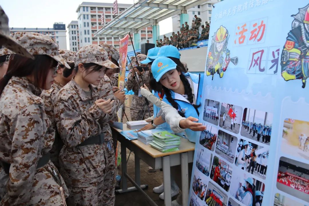 消防志愿者纳新咨询台前,宁德师范学院消防志愿服务队队员介绍队伍的发展历程和工作目标,激发参训同学们的参与热情,壮大消防志愿者的队伍。