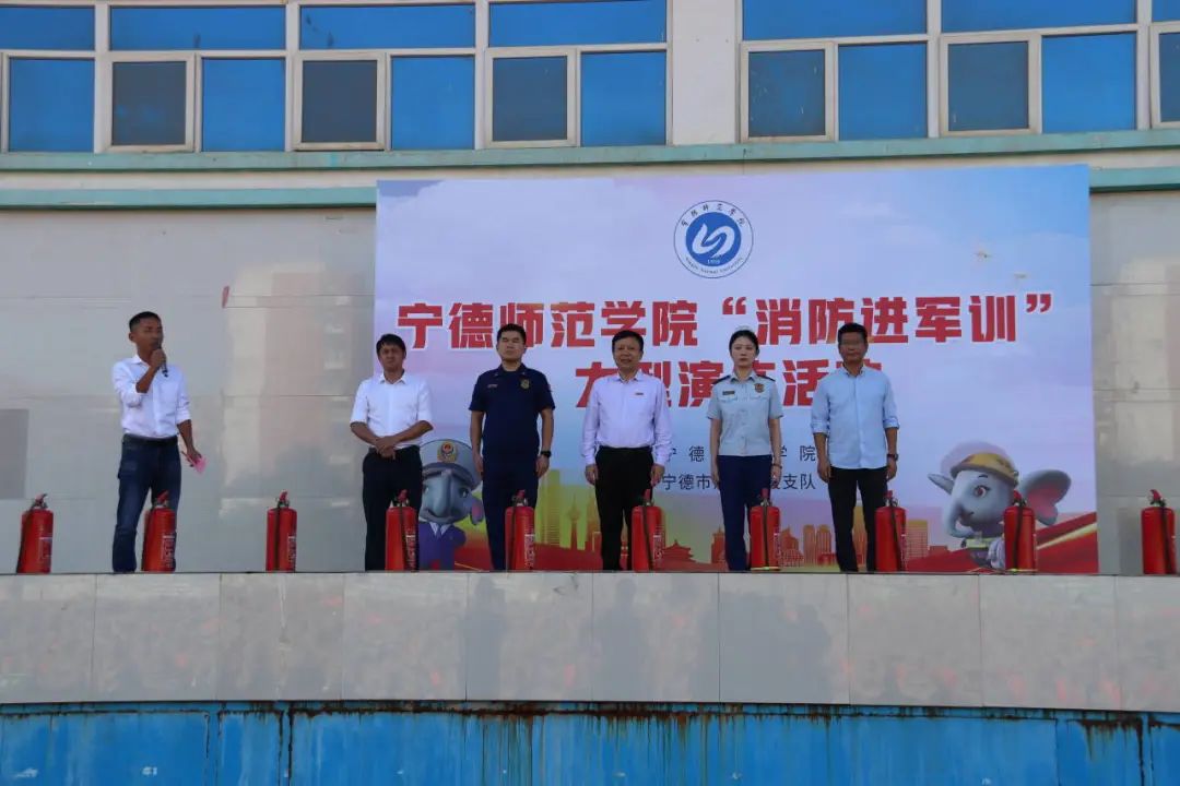副校长颜桂炀,学工部(处)、保卫处有关负责人,宁德市消防救援支队消防员,以及2600余名新生参加了活动