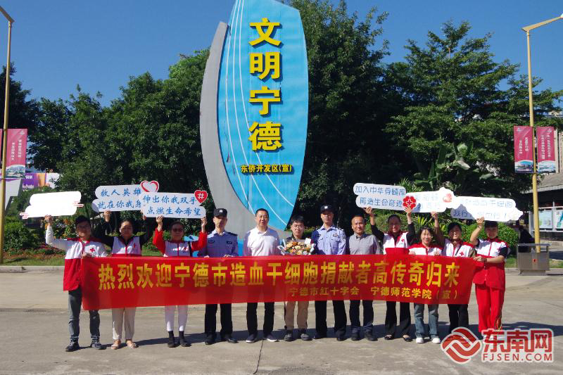 东南网11月2日讯(本网记者 陈玲汇)11月1日上午,宁德市红十字党组书记、常务副会长丁伟武带领宁德市红十字造血干细胞捐献志愿服务队前往宁德市动车站为完成造血干细胞捐献的高传奇举行了简单而温馨的欢迎仪式。
