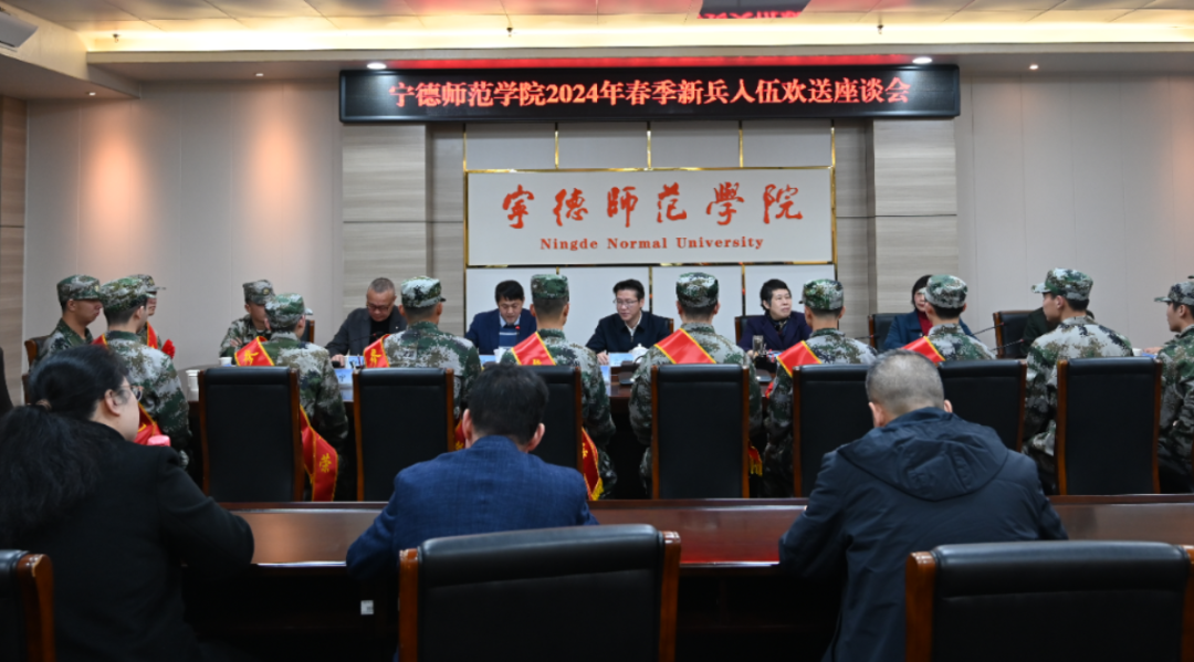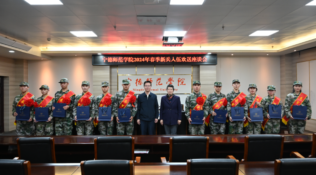3月13日下午,我校召开2024 年春季新兵入伍欢送座谈会。会上,校党委副书记江潮炳、副校长陈旺玉为即将踏上军旅征程的新兵们送上了最真挚的祝福和期许,并代表学校向新兵们赠送纪念品,勉励新兵们要时刻保持军人的优良作风,严格遵守纪律,刻苦训练,不断提高自身素质,为保卫祖国的安全和人民的幸福贡献自己的力量。
