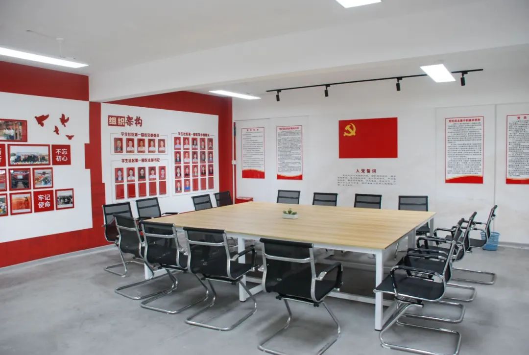 党建赋能“四心”文化园,位于学生宿舍楼9号楼一层,面积约400平方米。