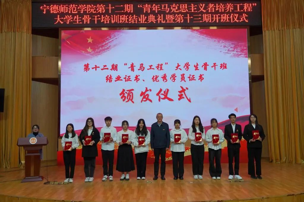 3月19日,我校举办第十二期“青年马克思主义者培养工程”大学生骨干班、第七期“习近平新时代中国特色社会主义思想读书社”结业典礼暨第十三期“青马工程”大学生骨干班、第八期“读书社”开班仪式。校党委书记夏良玉为学员颁发结业证书和优秀学员证书。校团委书记陶莉主持会议。