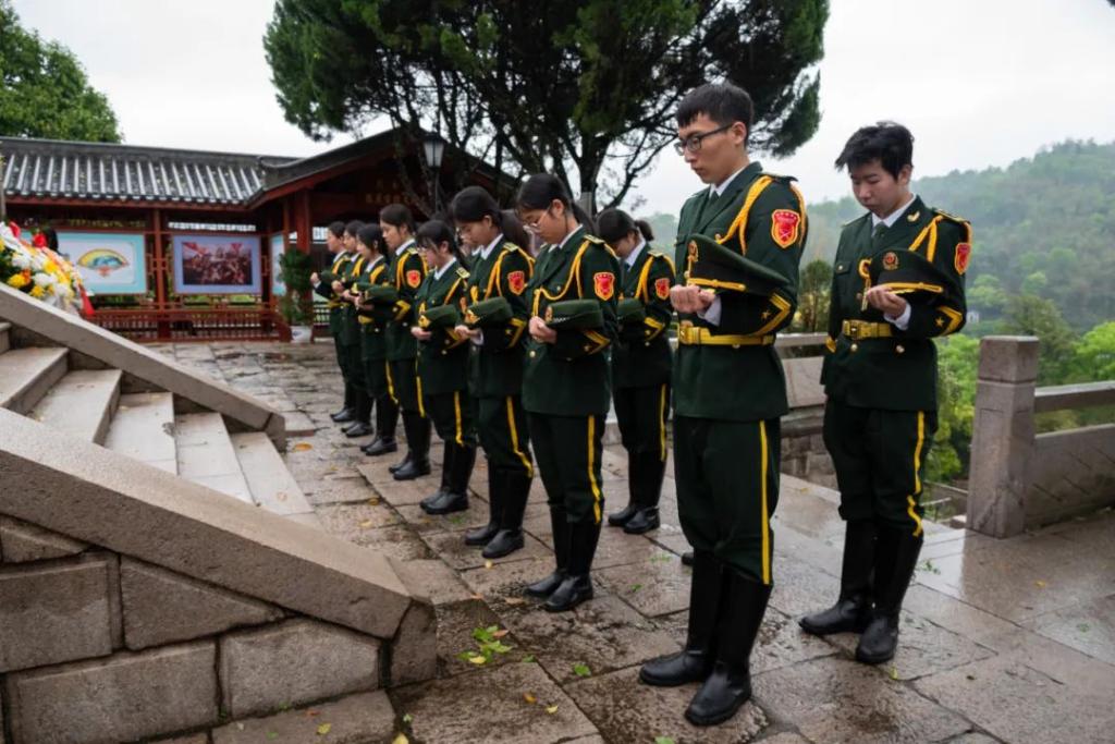国旗护卫队同学代表在烈士碑下发言。烈士们用自己的一生串联起了关于国家命运、青春奋斗和革命理想的红色记忆,他们的故事展示了共产党员始终为人民谋幸福、为民族谋复兴的初心和使命。他们勇敢无畏、忠诚无私的精神跨越历史的长河,依然能够震撼和影响后人。他们的事迹提醒着每一位同学,和平来之不易,值得我们每一个人珍惜和传承。