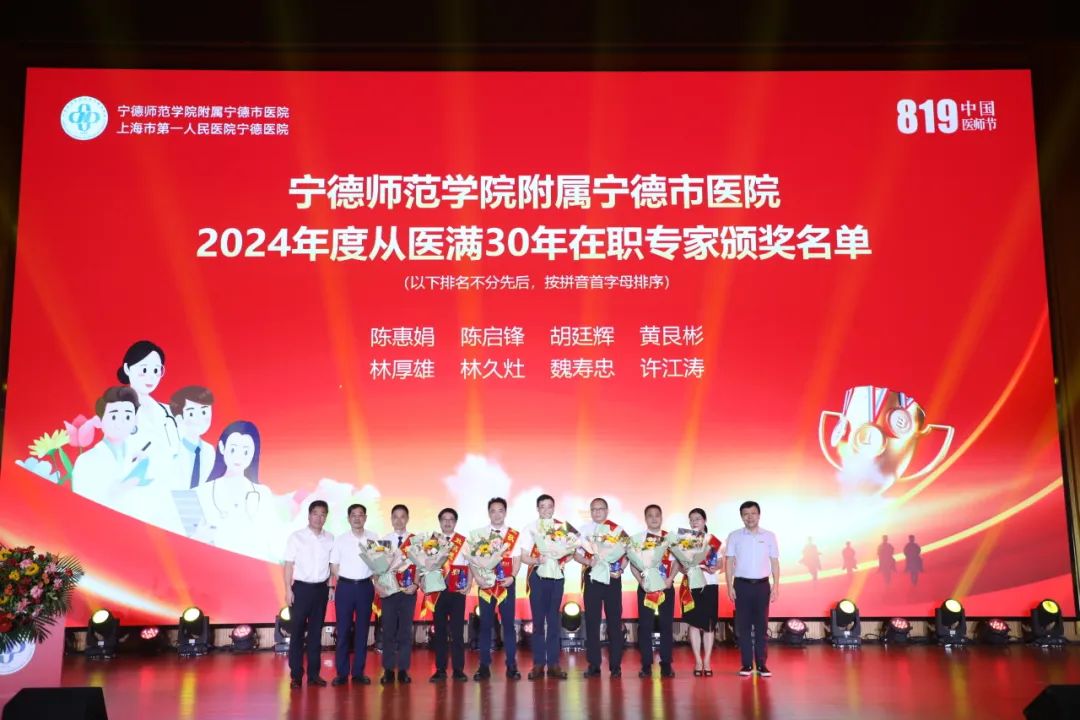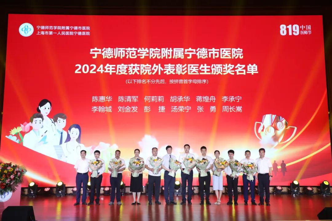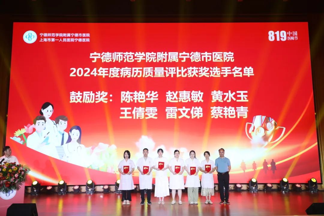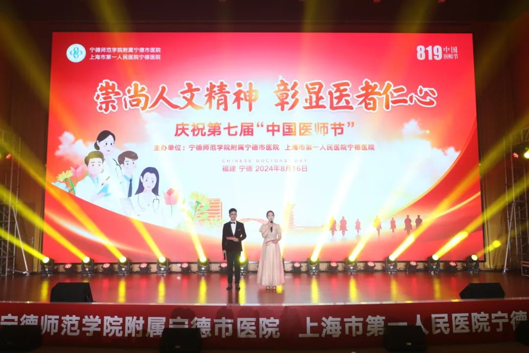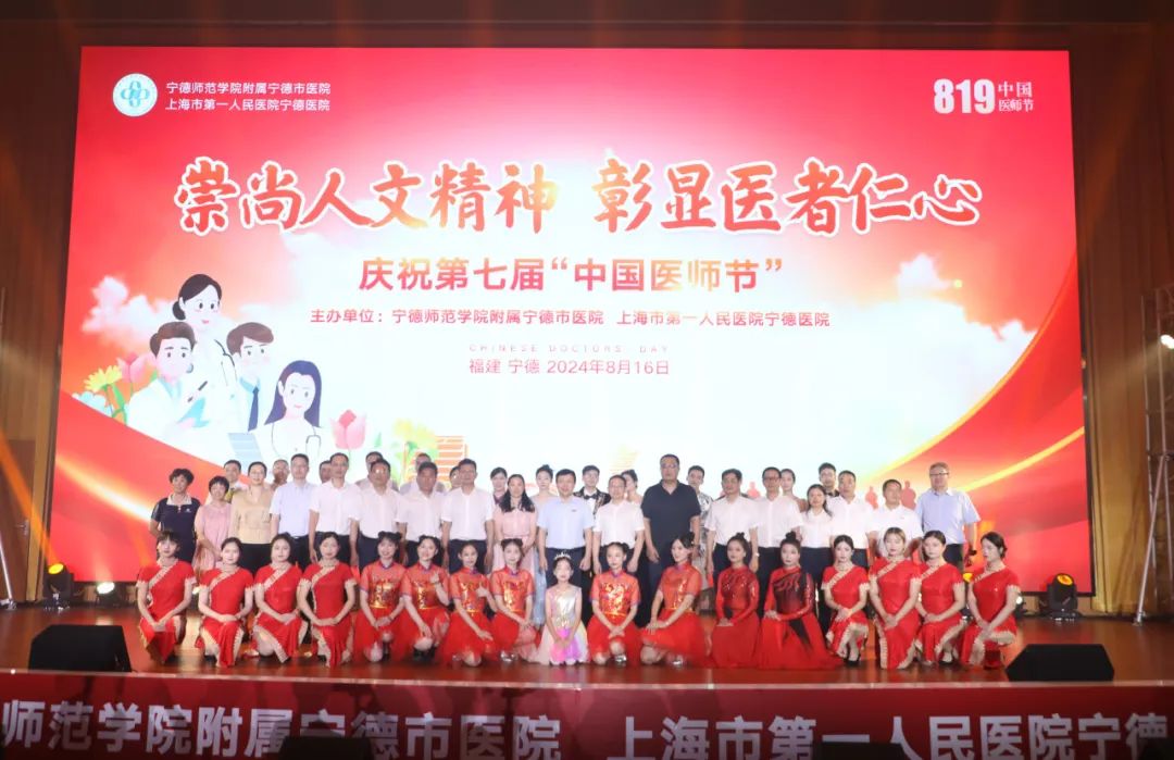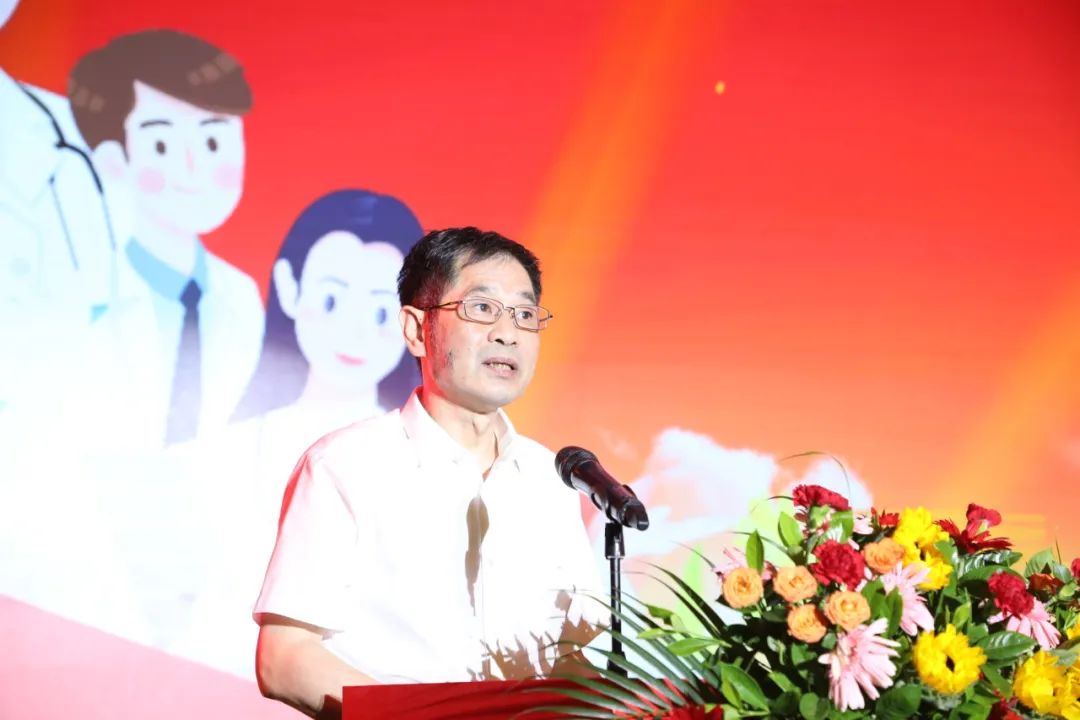 8月16日,附属市医院举办“崇尚人文精神,彰显医者仁心”2024年“中国医师节”庆祝活动。副校长颜桂炀、宁德市卫健委三级调研员吴启明、共青团宁德市委副书记张玮、宁德市医保局副局长邱慧斌、宁德市紧急救援中心主任林达、东侨经济技术开发区管理委员会卫健中心主任陈丽晶,附属市医院党委书记陈子春、执行院长吴光辉等医院党政班子成员及医院300多名医务工作者参加庆祝活动。