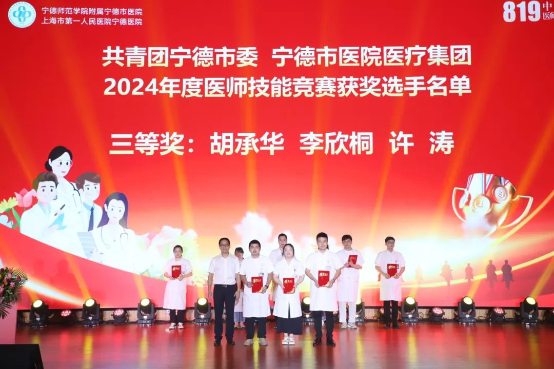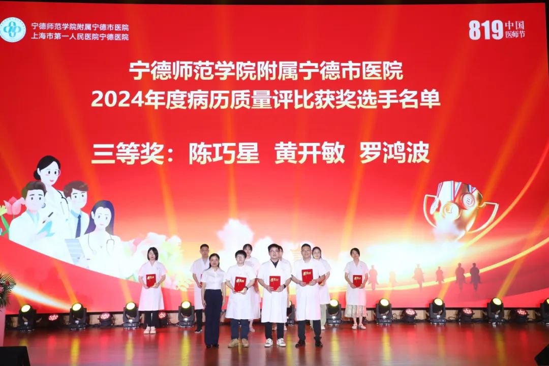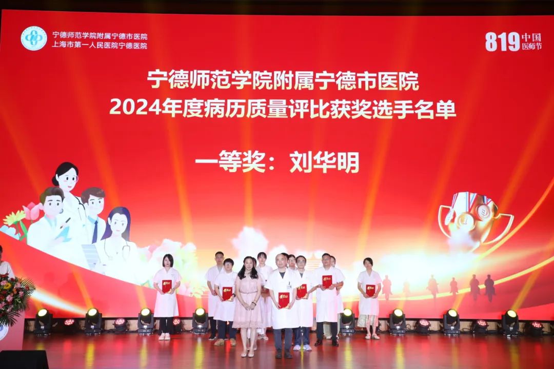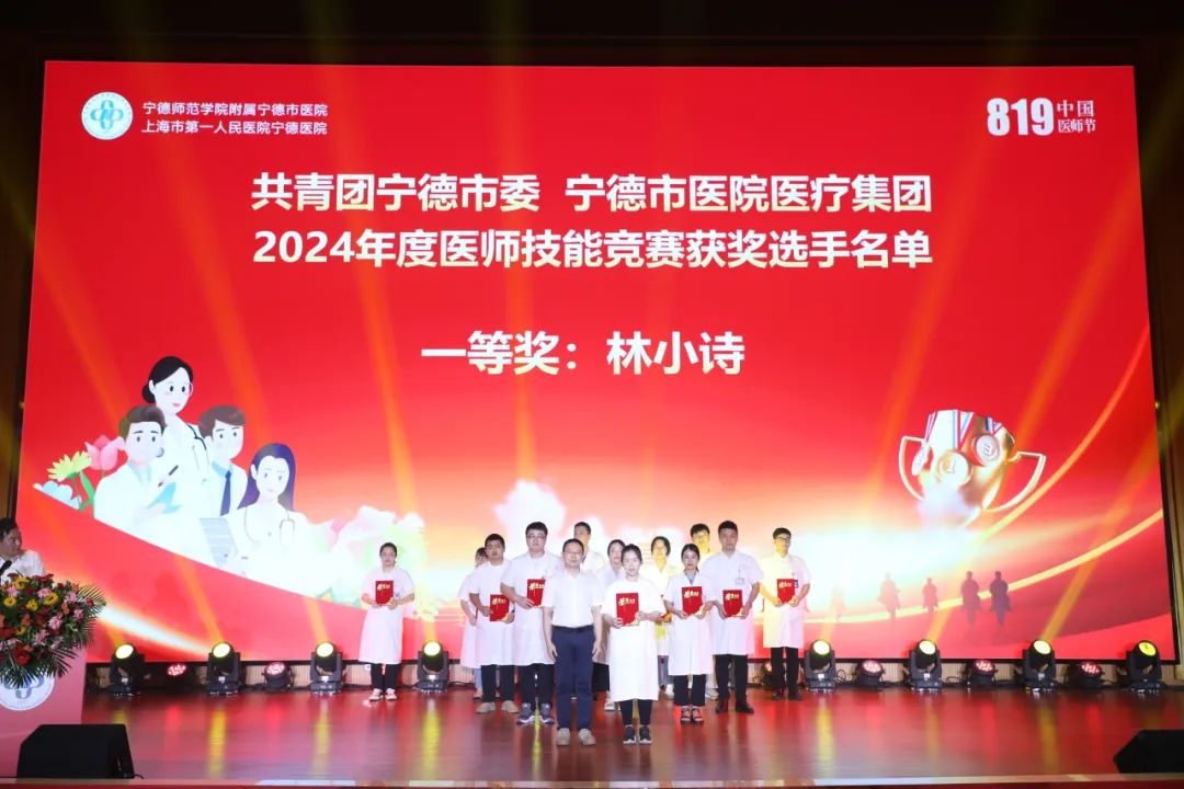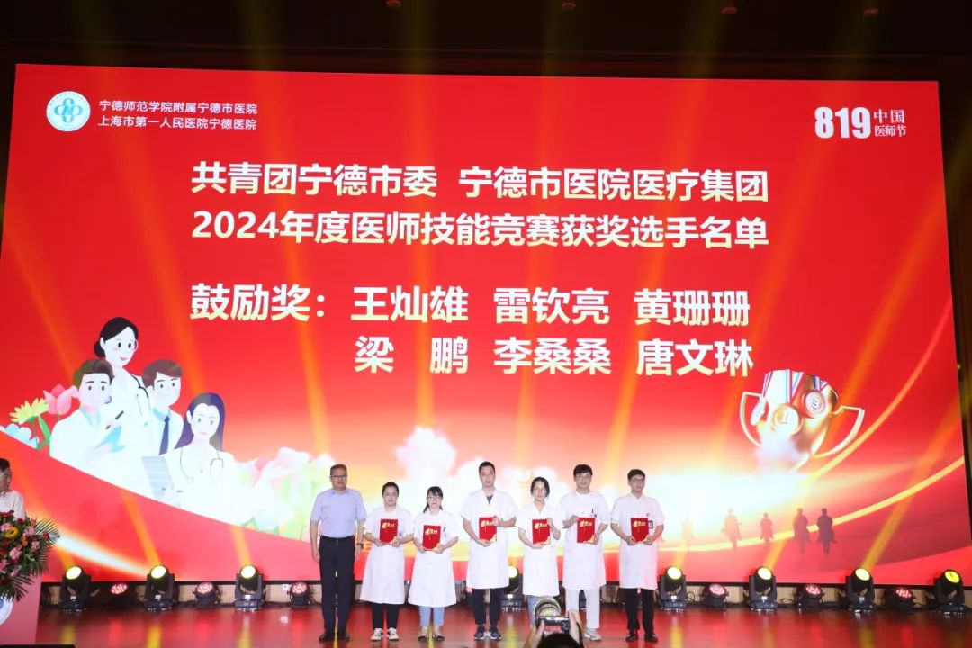 8月16日,附属市医院举办“崇尚人文精神,彰显医者仁心”2024年“中国医师节”庆祝活动。副校长颜桂炀、宁德市卫健委三级调研员吴启明、共青团宁德市委副书记张玮、宁德市医保局副局长邱慧斌、宁德市紧急救援中心主任林达、东侨经济技术开发区管理委员会卫健中心主任陈丽晶,附属市医院党委书记陈子春、执行院长吴光辉等医院党政班子成员及医院300多名医务工作者参加庆祝活动。