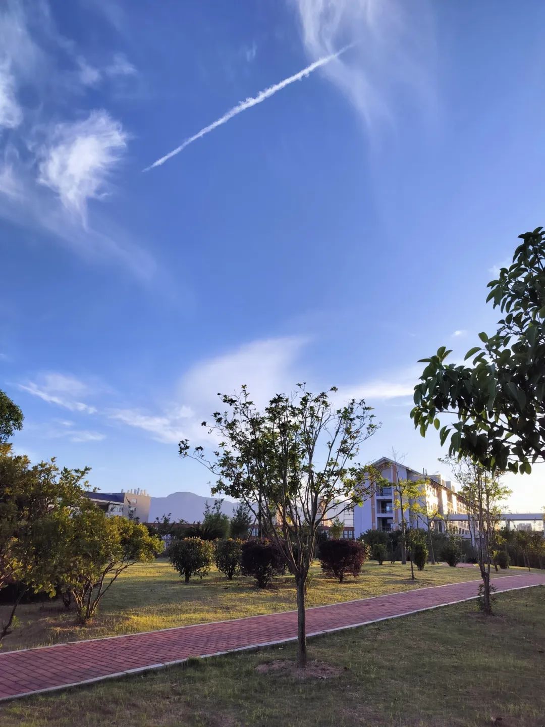 教学楼下,树影在余晖的映照下被拉长,不仅为校园增添了一抹绿色的生机,更在无声中给予我们力量和慰藉,让我在新学期的征程中,感受自然的陪伴与鼓舞,怀揣着希望,坚定地前行。