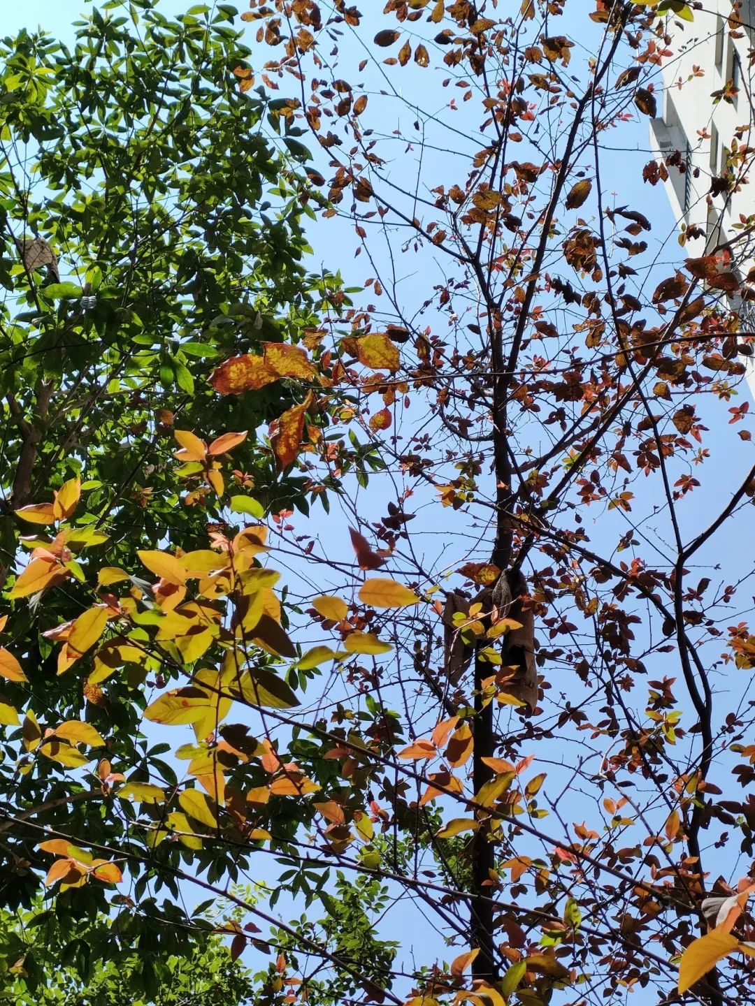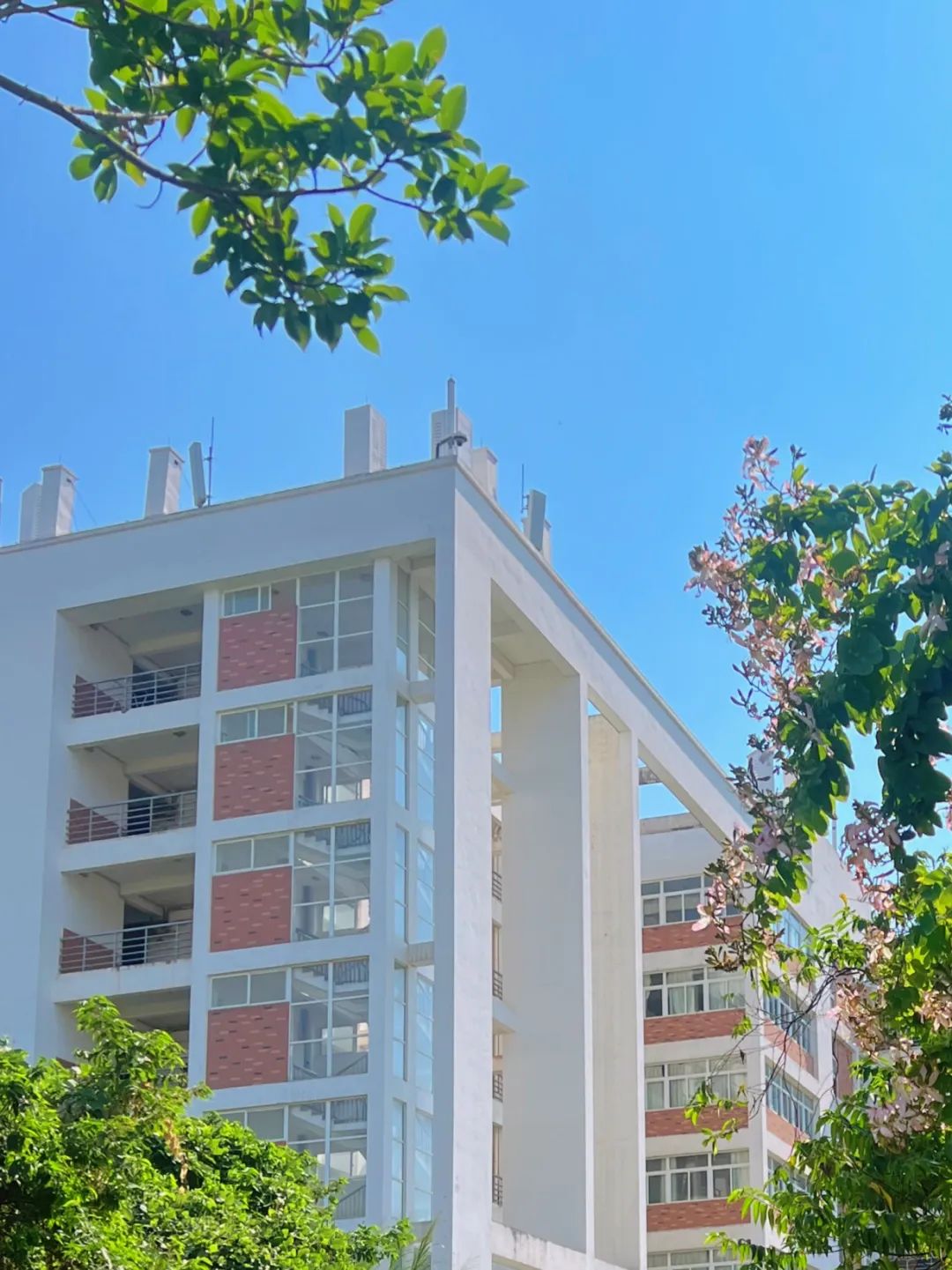从食堂走出来,傍晚的光更富有色彩,风景更加美丽。花海广场上的树木高壮,就像一个个顶天立地的人;又像长在海南的椰子树一样,让我眼前不由自主地浮现出大海和海鸥;还像充满希望,充满朝气的新世界。