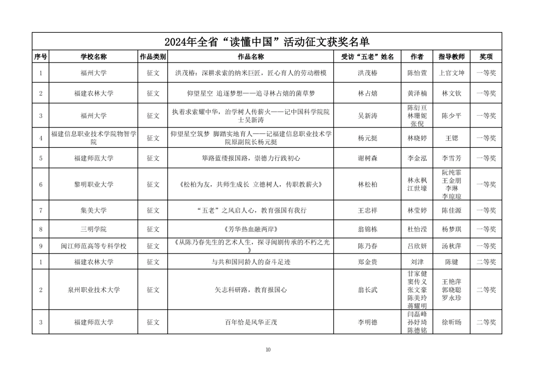 近日,福建省教育系统关心下一代工作委员会公布了2024年教育部关工委“读懂中国”活动获奖名单,我校关工委荣获优秀组织奖。