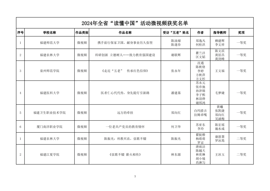 此次“读懂中国”活动全省本、专科院校积极参与,众多院校发动多个院系部门组织师生联络“五老”参与活动,创作了大量征文、微视频等作品。此次活动中的出色表现,彰显了我校关工委在思政教育、传承教育精神等方面的积极成果,体现了宁德师范学院积极贯彻党的二十届三中全会精神和全国教育大会精神,全面落实相关文件要求的决心。