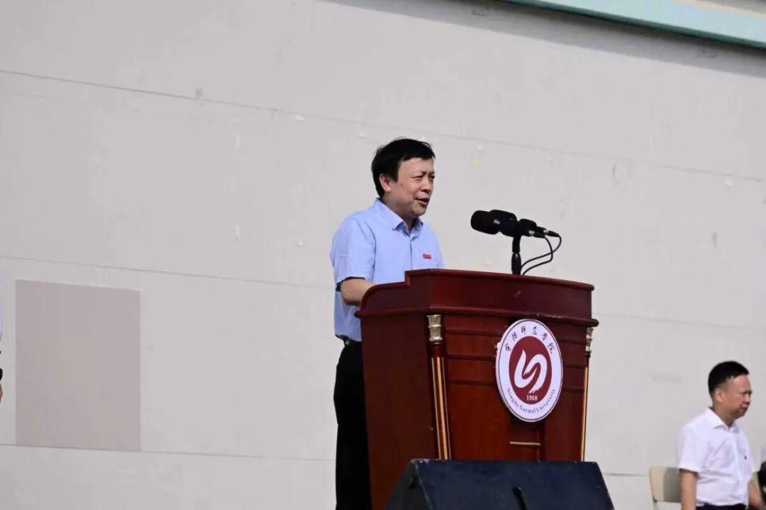 颜桂炀副校长代表学校向参加此次军训的2025级全体新生表示亲切的问候!向支持我校军训工作的武警宁德支队领导和官兵,表示衷心的感谢!他希望通过完成本次军训教学任务,教育引导同学们全面了解、正确认识党的历史,了解基本的国防理论和军事知识,树立居安思危的国防观念,为实现中华民族伟大复兴奉献青春力量。