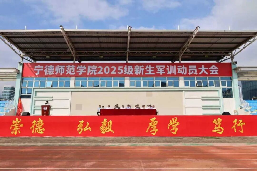 10月9日上午,我校于东侨校区田径场举行2025级新生军训动员大会。副校长颜桂炀出席活动并作动员讲话。武警宁德支队有关负责人和承训官兵,党政办、保卫处(武装部)、学工处、后勤基建处、教务处、宣传部负责人,各二级学院分管学生工作负责人,2025级新生辅导员和全体新生参加大会。