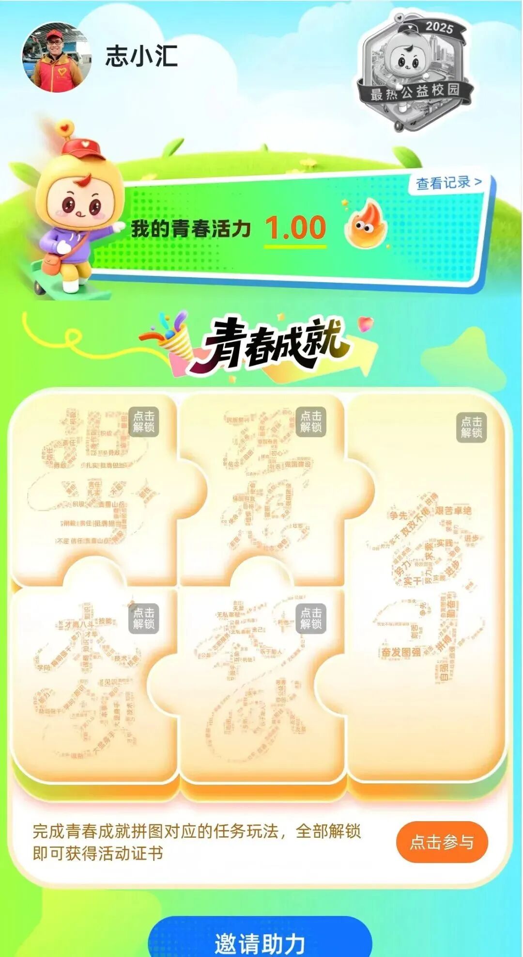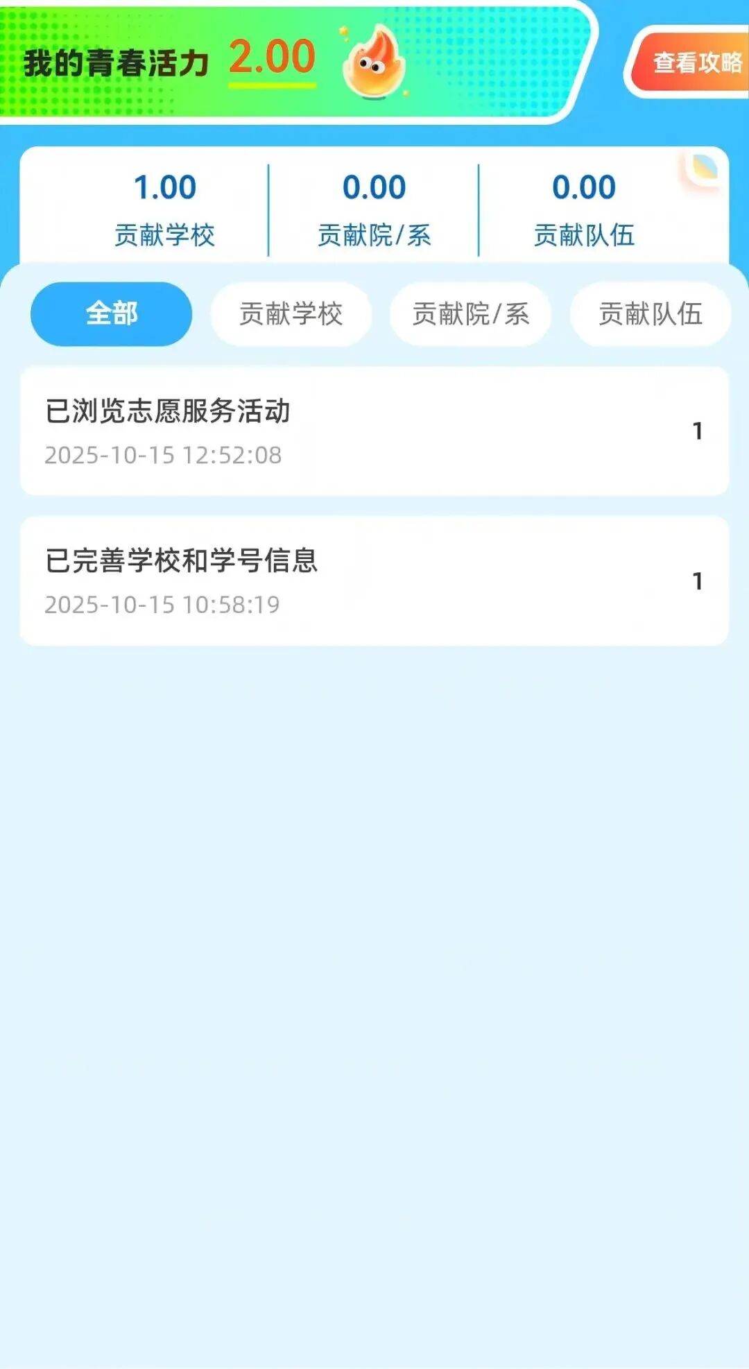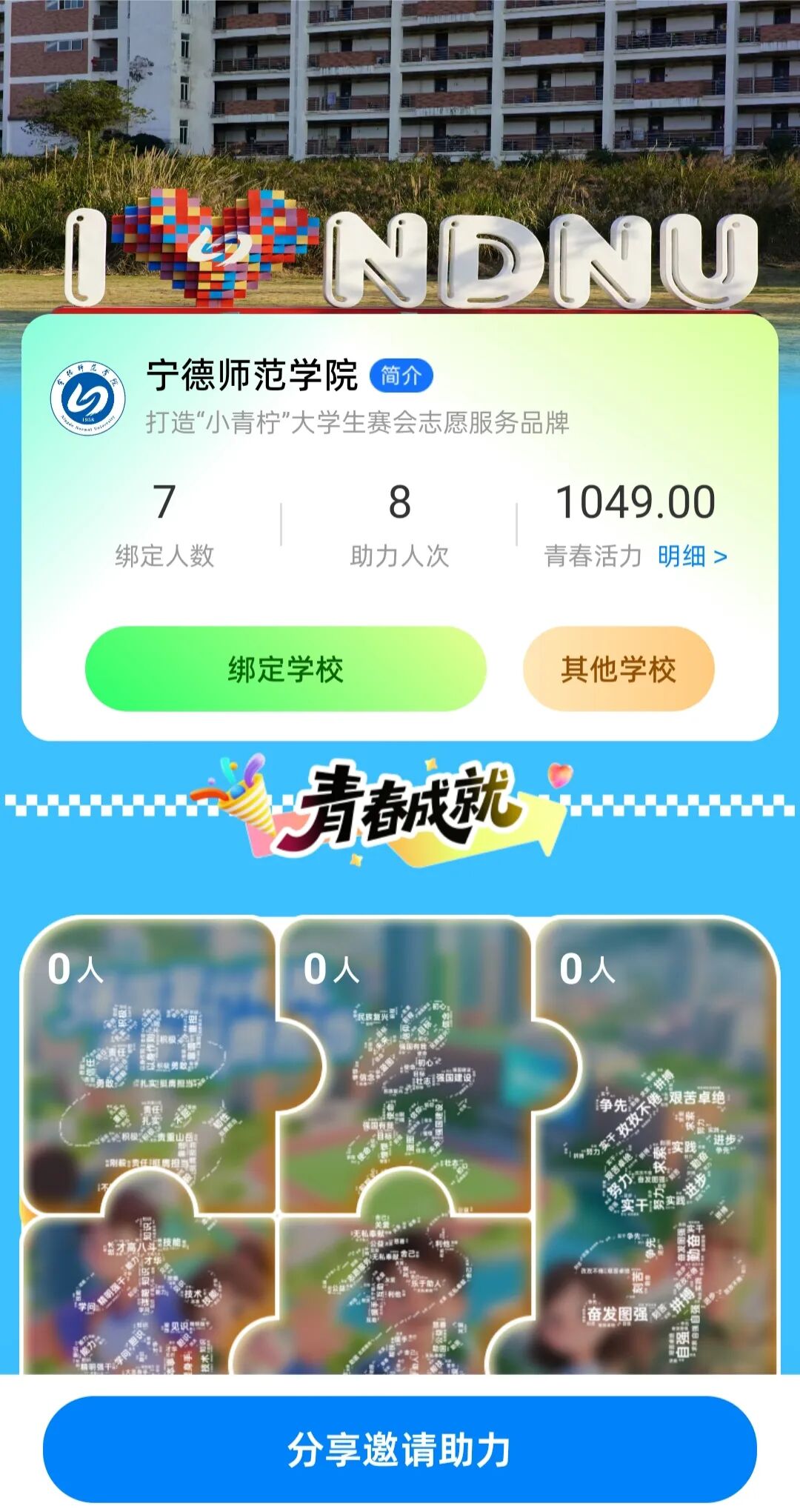 * 1.进入活动专区一定要记得绑定学校哦~绑定期间获得的“青春活力”就可以直接自动计入给学校啦~
