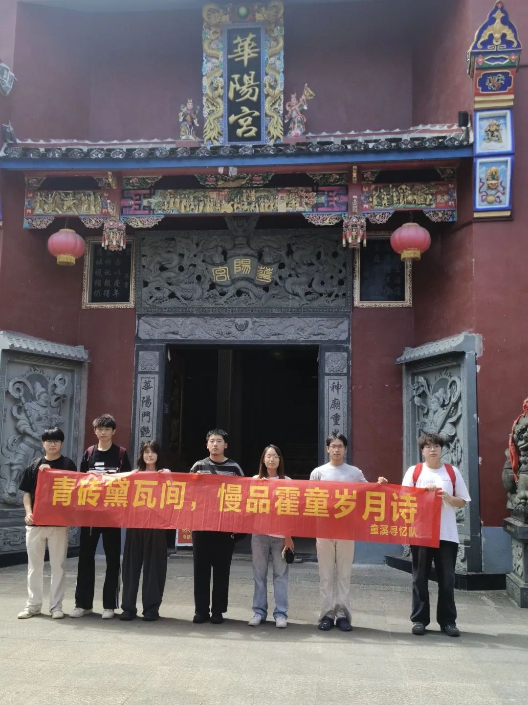 实践队于7月5日正式进入古镇核心区域。队员们步入古镇,沿着青石板路细致观察两旁错落有致的古建筑群,记录其独特的风格、结构、建造年代及背后的历史故事。实践期间,队员们系统考察了古镇丰富的历史文化遗存。在华阳宫,队员们聆听工作人员讲解,深入了解其建筑布局、悠久历史与民间传说。方氏宗祠与黄氏支祠的宏伟建筑和族谱匾额,生动展现了当地深厚的家族文化与凝聚力。体现海洋文化的天后宫和具有独特历史背景的望恩宫,则进一步丰富了队员们对当地民间信仰与历史事件的认知。