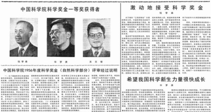 1957年1月24日,中国科学院首次颁布中国科学院科学奖金(现已改称“国家自然科学奖”)。这是新中国成立后,第一次颁发面向全国的科学奖金。获得首届国家自然科学奖一等奖的科学家分别是钱学森、华罗庚、吴文俊。